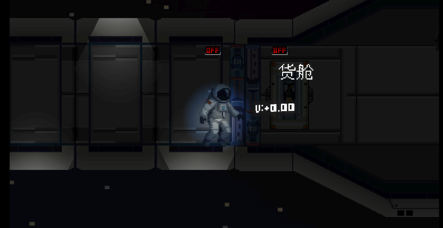 2D像素画风,整体色调偏昏暗,符合太空环境认知。界面结构很清晰,UI品质不错,逻辑很清晰。场景光源处理很好,警示色作为提醒,有问题的区域一看便知。角色看不清楚脸,穿着厚重的宇航服,行动有喷气特效,和现实世界对太空行走的理解一致。
