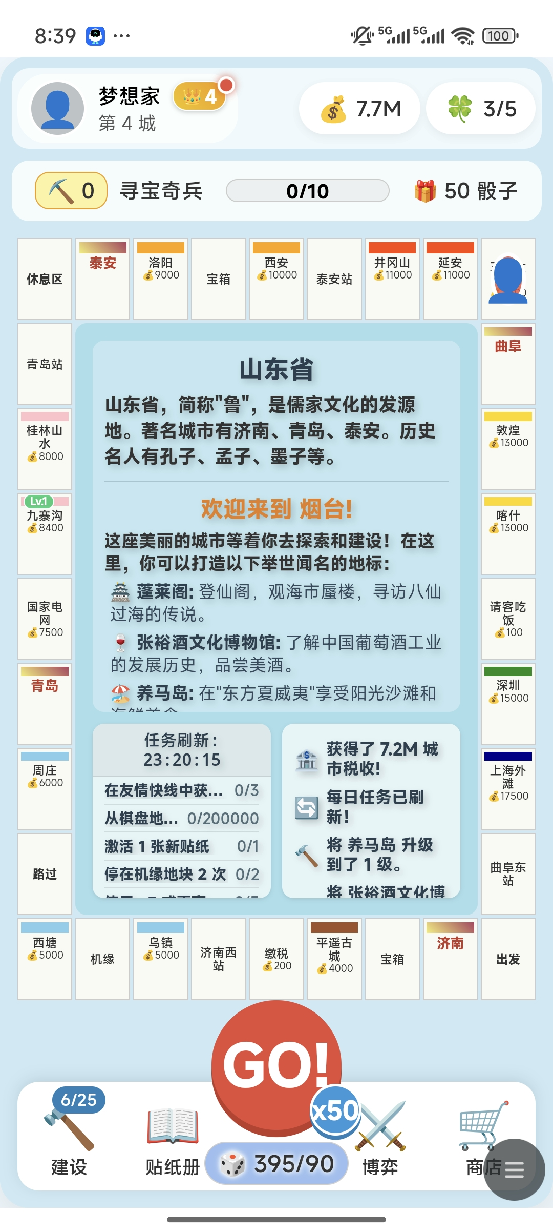 做了一款大富翁的模拟游戏,游戏里可以遍览咱中国各个城市,希望大家喜欢~