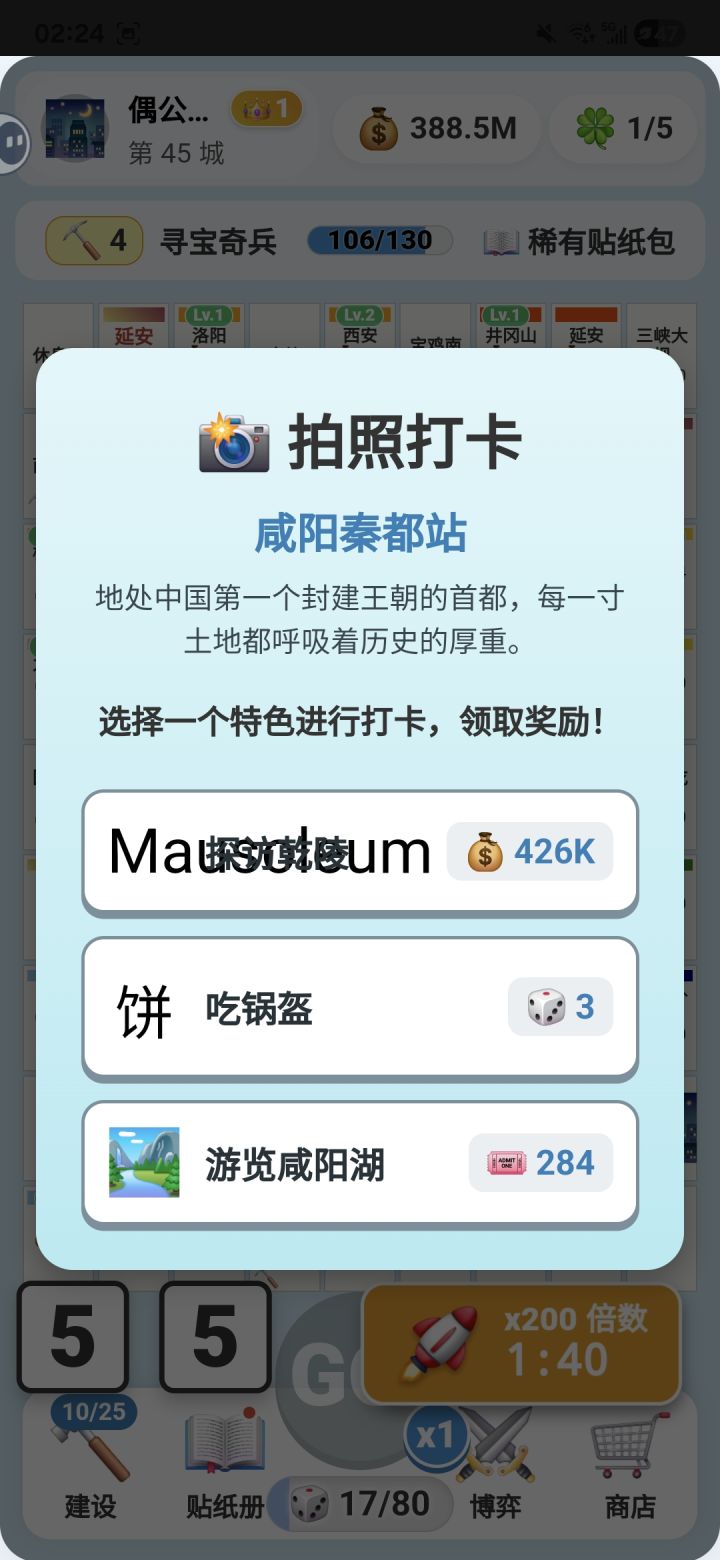 集齐一个城市的贴纸给你的是5个四叶草,奖励不高,不用上头