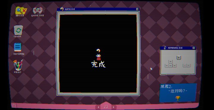 🌟 游戏通过“跳出游戏框”、运用“游戏外元素”、按键失灵等看起来像是Bug的设计来契合本次Gamejam主题,设计得很精炼巧妙,没有一丝多余的解释,但能靠右边的按键提示和游戏直觉快速上手,有种和玩家心照不宣的默契感。