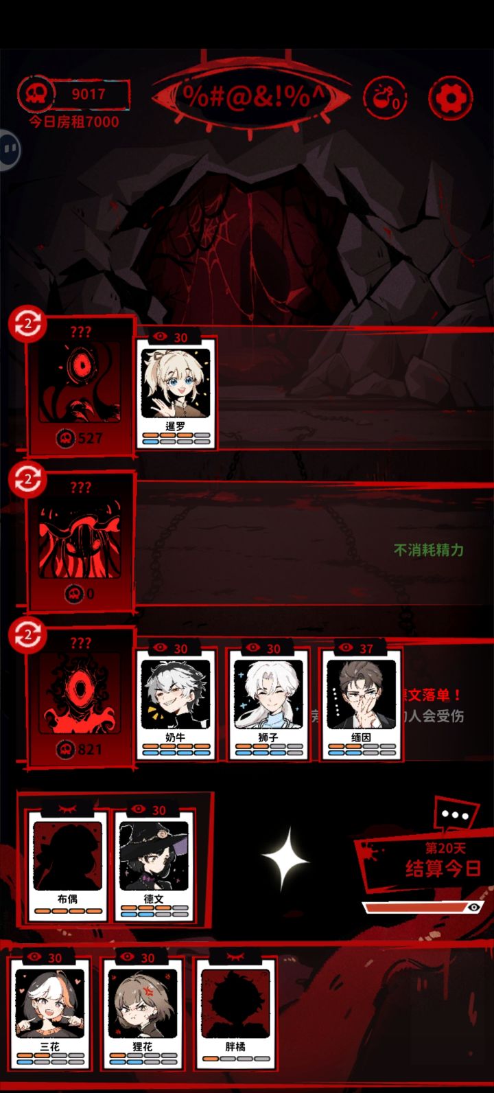 如图所示附身影子鬼,死不掉根本死不掉,重伤隔天必死,结果没死成还能吃个受伤(影子鬼:活爹你就造吧)还有希望添加一个回理智的手段,用清醒药也行啊,天天疯
