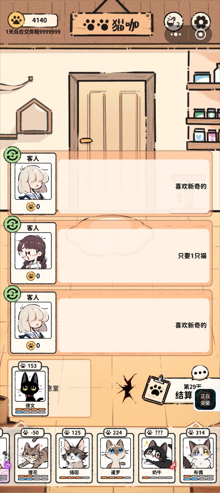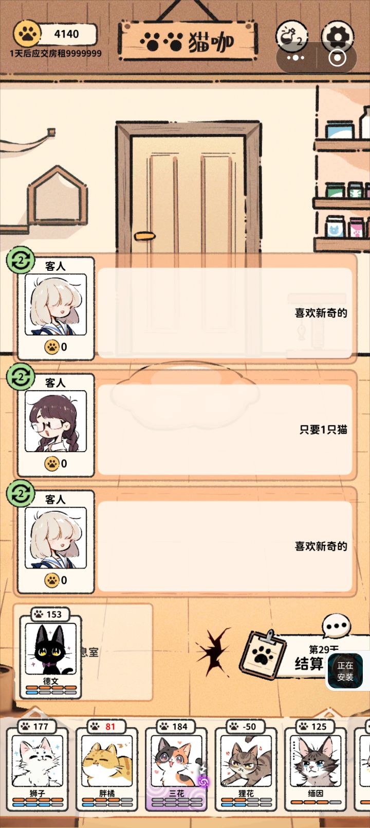看见有人说容易失踪,遂发了这个,让你丢弃大脑,全员通关流程:开局:随便用刷新,争取第二天拿到德文,而后第三天游戏正式开始步骤1.用药顺序:狸花→暹罗→布偶→狮子→无(此时大概率通关)步骤2.刷新:点进怪区,见到红就刷,没红不刷了步骤3.放猫:不用管猫咖的一切,看见“经营力+2”直接把狸花放第一个,然后暹罗布偶德文都放上,布偶无论有没有收益都必须每四天上满三天,然后她醒了之后就可以单