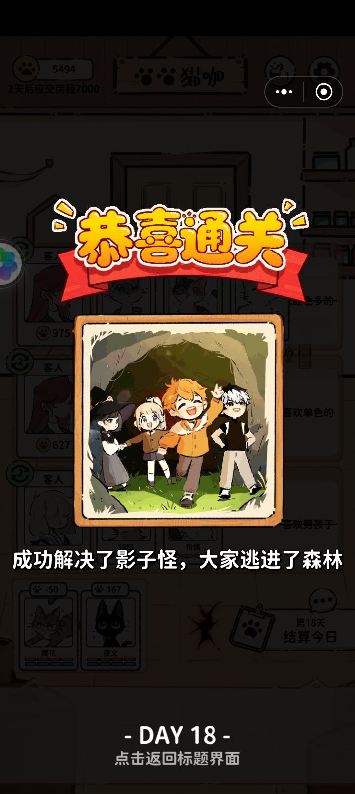 干了两天才明白有探索值,满了才能触发影子鬼事件,刚刚结束,昨天动不动就因为没注意客人词条失踪,动不动就因为没注意猫咪的词条就失踪