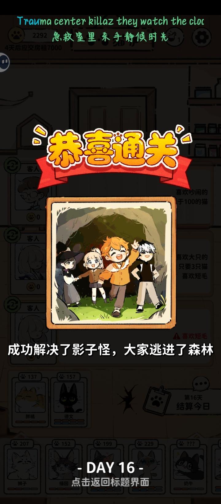 #发现好游戏 一共玩了4小时,终于通关啦!也是不容易啊,真的很好玩,就是玩法有点单一,而且没有存档,建议多加几个玩法和可爱的猫咪!#猫咖怪谈