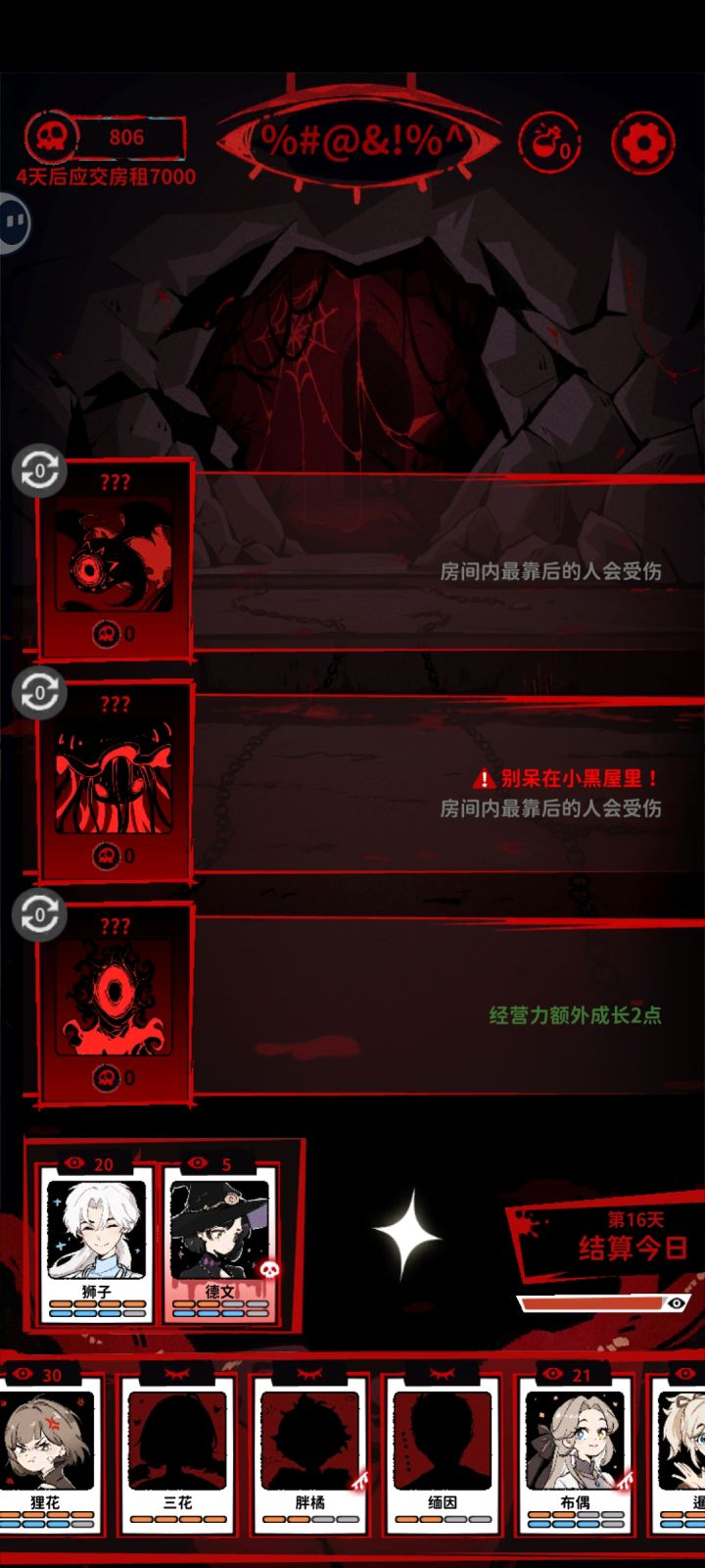 在确保房租足够的情况下尽快买出德文(第二次购买(750)就会出德文)买出德文后第二天会进入里世界,之后便可以看到里世界的词条,必须满足红色词条!否则可能会有小猫失踪,如果你不买德文的话,每天都得猜里世界词条,失踪概率也会更大然后就是在满足词条的情况下尽可能多的获取金币,但注意不要让小猫精力耗尽,剩一两格的时候需要放进休息室回复,精力耗尽的话小猫会进入疲惫状态三天不能迎客很耽误事儿探索值满后出