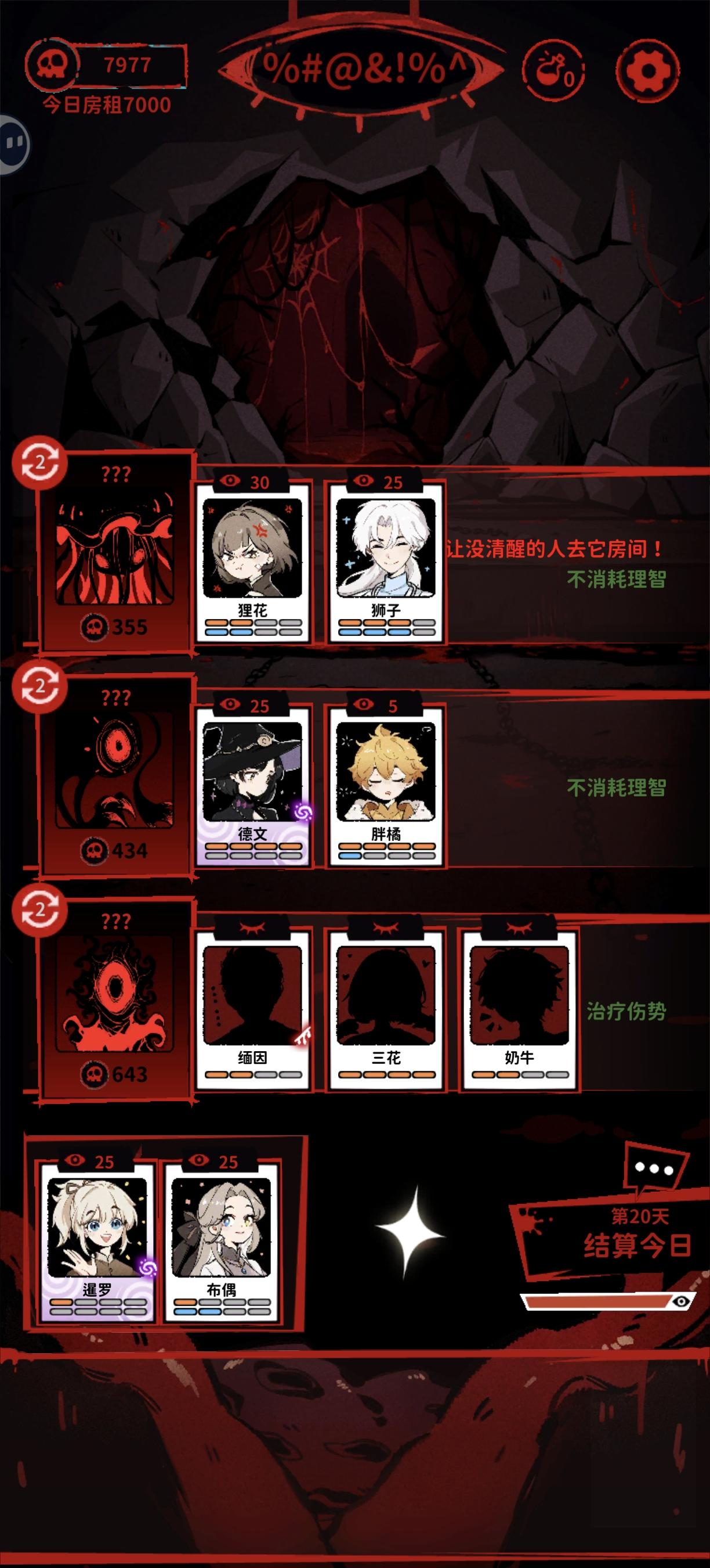 很有意思,前面两次不太了解规则所以吃亏了,第三次就过了。这边给建议是最好三到四天里就把德文刷出来进里世界,在满足条件的情况下尽量多上猫,有理智药就抓紧用但理智药最好别给奶牛(给了就是一次性用品太浪费)基本上二十天里就能结束的
