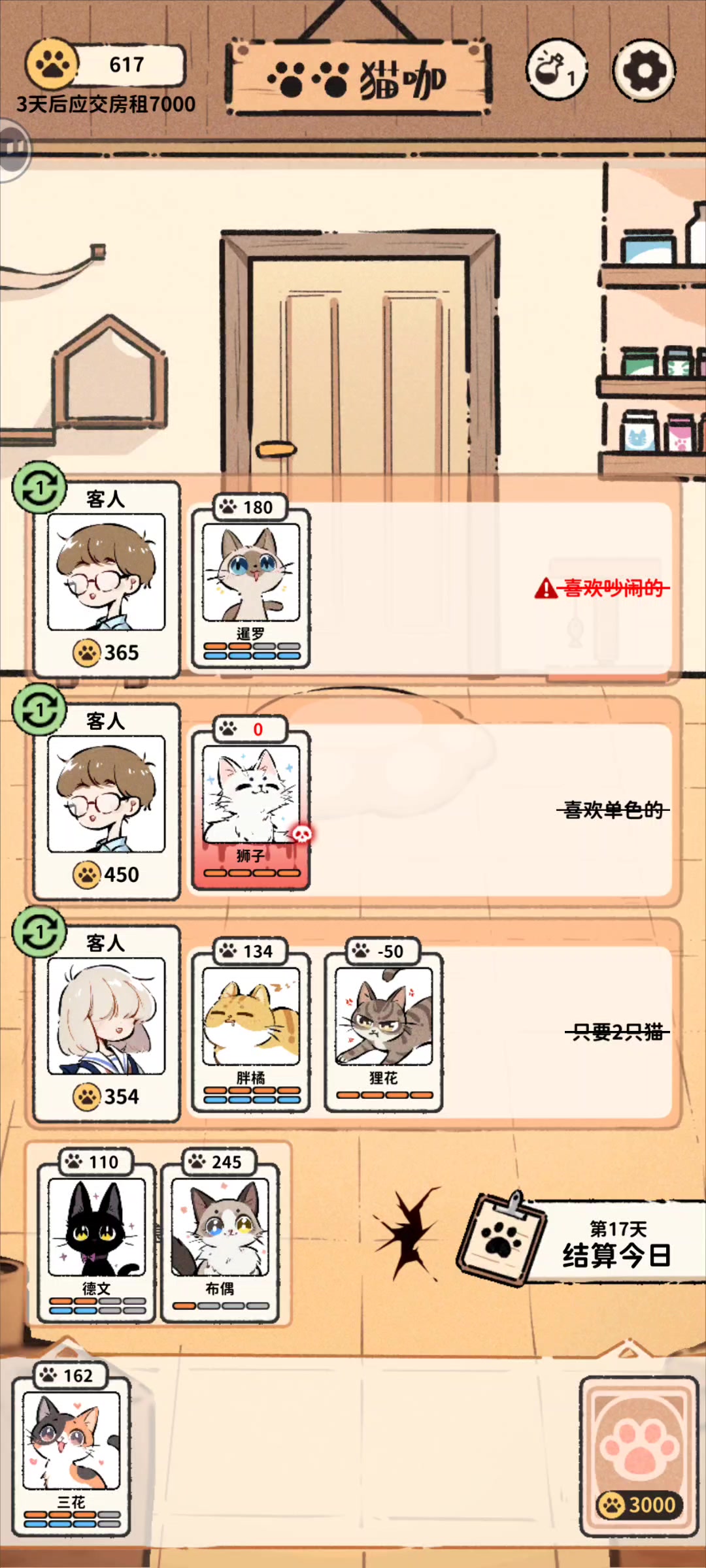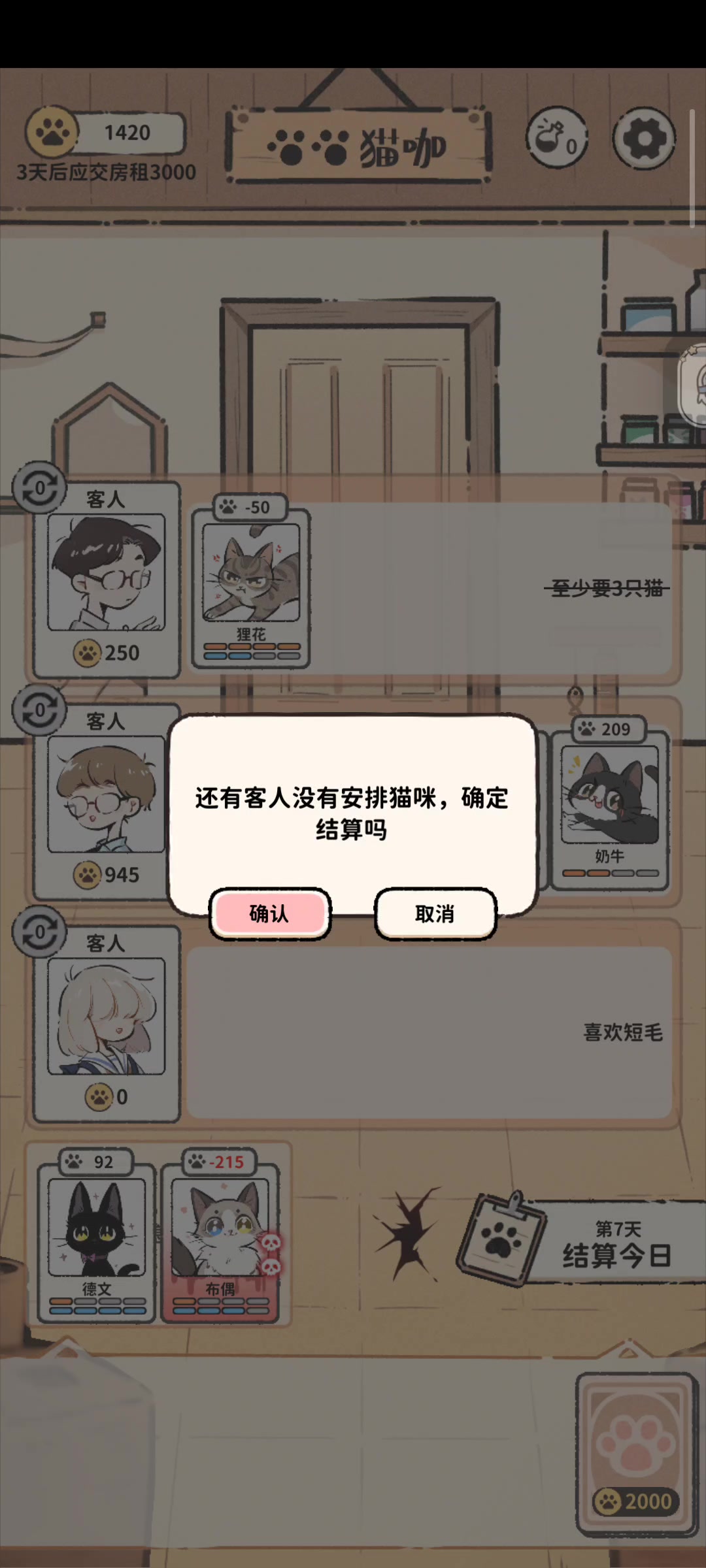游戏名称 #猫咖怪谈 活动 #宝藏游戏安利派对 秘诀:要想富,多买猫🐱(?) 一周目扣扣搜搜极限卡房租,N周目上来就买猫,反而宽裕不少,猫多了金币结算也多(而且后面规则越来越多)不轮班休息很容易陷入无猫🉑用的窘境 #卡牌 #独立游戏 #模拟经营 #策略 #TapTap聚光灯独立游戏 #聚光灯gamejam #TapTap聚光灯游戏 #TapTap聚光灯gamejam #休闲 #休闲游戏 #策略