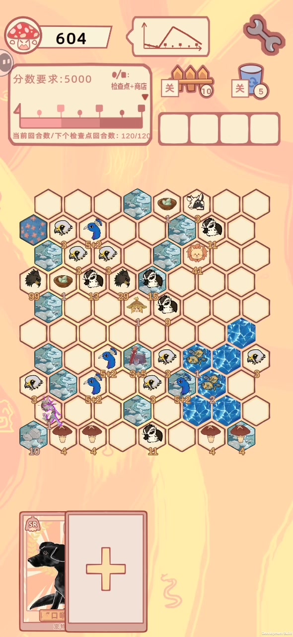 游戏终于上线了!打了一局分享给大家! 开局思路先放两只兔子相邻,让它们自行繁殖扩大数量,然后开始抽卡。前几轮抽到了夜鹭,鸟类在湿地上会获得加成,所以直接部署,并花了一回合控制夜鹭踩上湿地,增加金币同时成功获得鸟蛋! 小牛也是成长型单位,早期拿可以早点长大产牛奶。进入商店刷了个木头人,可以强化附近的【小动物】,决定前期走小动物流派,让兔子多繁衍然后吃到木头人的加成,成功突破春天的两个检查点。 来到夏