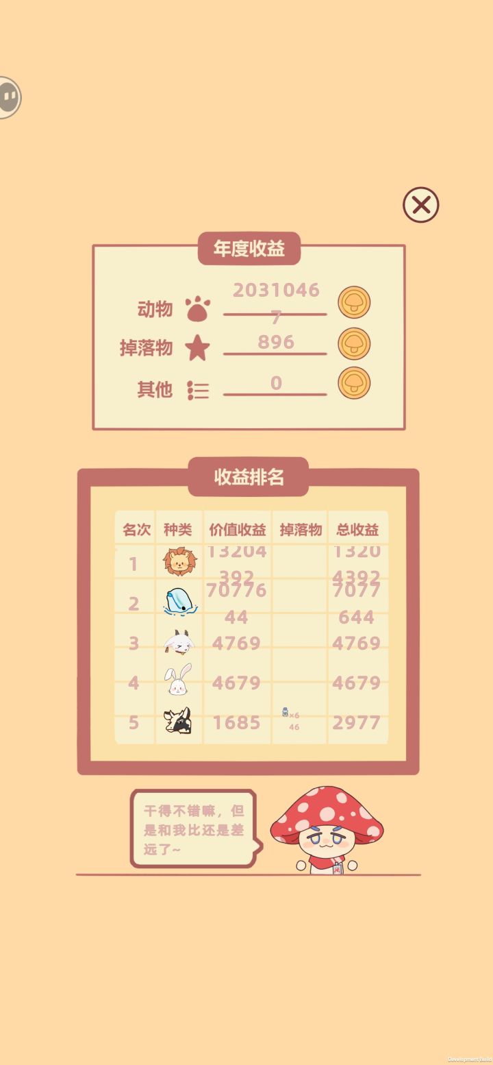 蘑蘑头的配音超可爱!翻倍卡还是太超模了,还没摸索出流派,就已经通关了。主页下面的三个按钮只有“play”可以点,左边两个按钮点了没反应,不知道是不是bug。
