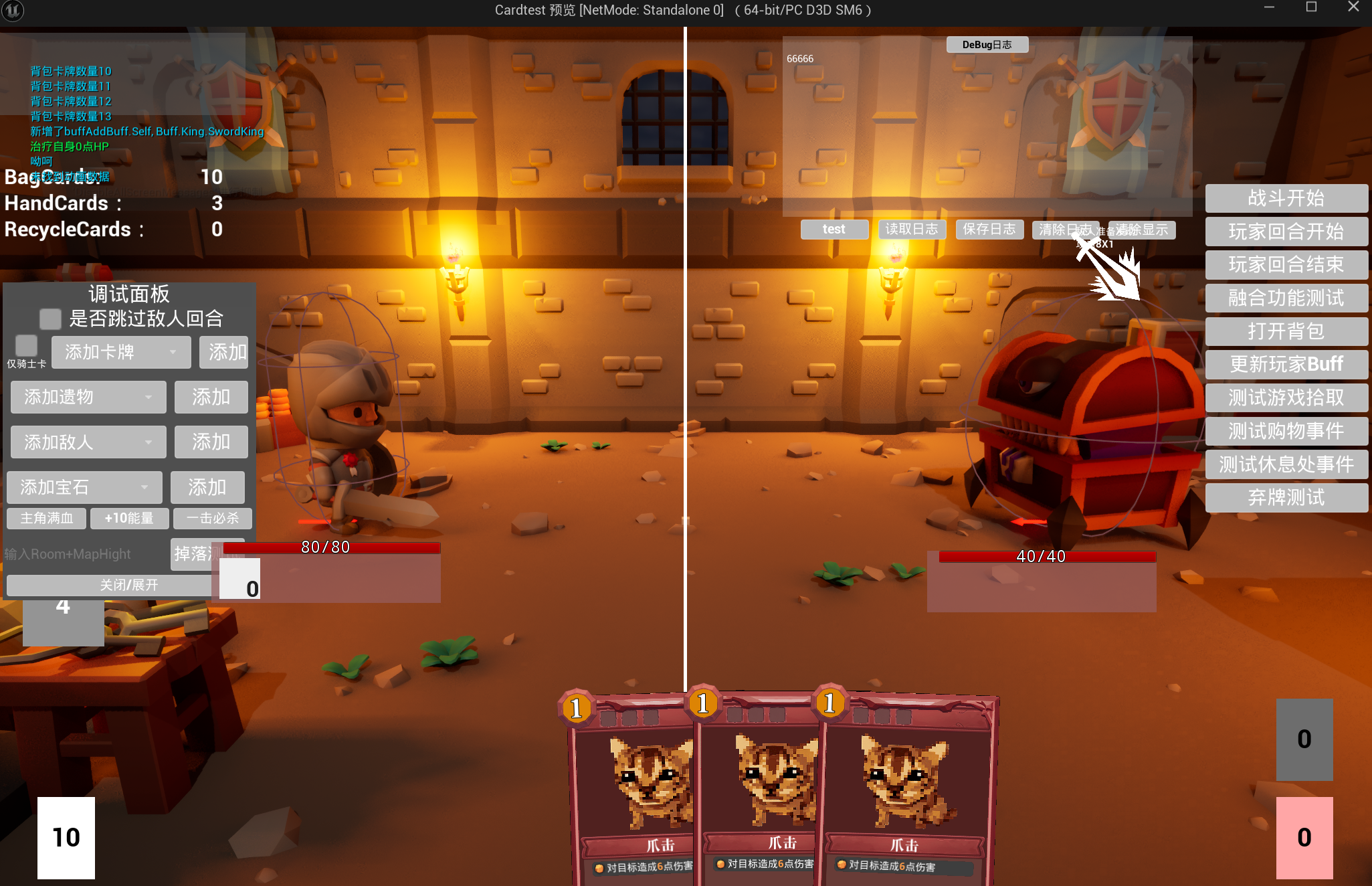 我勒个豆!这两个BUG宝石放上去伤害怎么变成120了?你确定这不是BUG? 嗯。。。还真是TAT。 在完成了第一波跑测后的BUG测试后,激动的对游戏内容进行了进一步的跑测梳理,这一次出现的问题相对而言更加轻松些。预计在修复完今日的BUG后会在[表情_狗头]本周周四正[表情_狗头]式开启试玩。 话说至此,本次比赛还是有些许遗憾没有完成 只完成了一套卡牌流派(感觉构筑还不是特别合适的那种) 就做了10