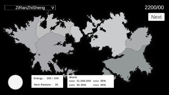 本期进展:在初步敲定主题后我们迅速开始了工作,完成了几个主要界面的UI设计和功能搭建,将游戏的核心机制确定下来,由玩家扮演星球通过对能量值的使用来影响星球上人类的建设与发展,从而构造生态平衡,目前游戏已经可初步运行。问题与风险:还在思考如何将本期主题更好地融入到我们的游戏玩法中,同时多分支剧情也需要思考如何设计,还有许多的随机事件,整套游戏的数值构成这些都是需要思考的地方下期计划:完成游戏的剧