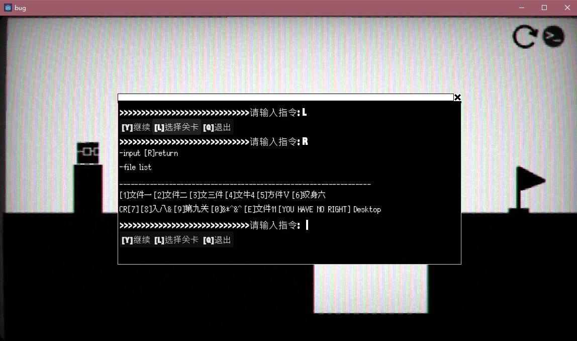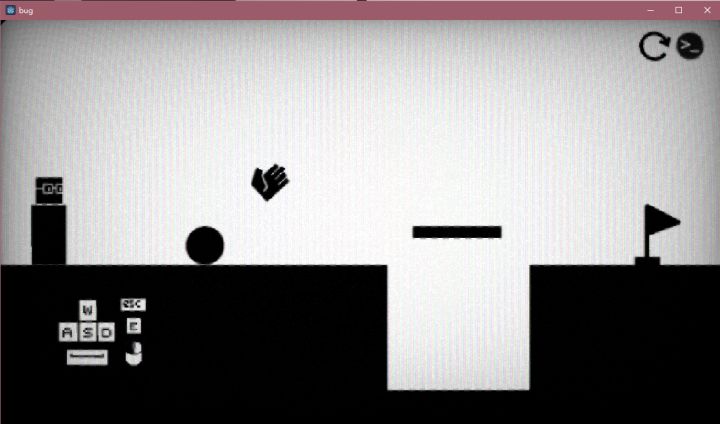 横版动作解谜游戏,键盘控制球体移动,鼠标控制抓握及其方向,走到终点位置抓握旗杆即可过关。以关卡制进行游戏,每一关的谜题设计都不同,都是一种新奇的体验。跳关的指令界面看起来像DOS命令符,一种很古老的电脑操作命令语句,如果接触过win2000左右的操作系统,这些命令不难理解,带有一种复古风。基础操作在背景板告知,是独游的常见方式,键鼠操作体验尚可,上手难度不大。