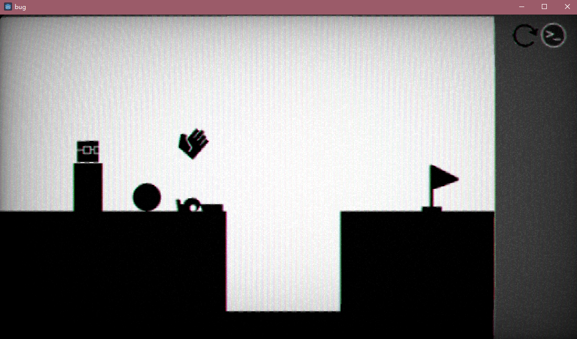 美术简洁但不简约,只用黑白色块,但越往后色散越严重,画面越来越模糊,暗示故障越来越严重,而且那个扭曲的效果也很到位!