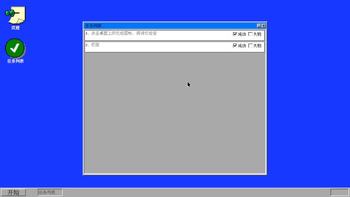 因为还有别的工作,这边的进度就有些慢。 看起来好像和之前差别不大。 但实际上基本完成了游戏的大部分编码工作。 游戏中每天的关卡内容,主要是三个部分:房间场景,计算机界面的桌面和菜单,现在可以从设计的配置里读取,目前设计上是有十天的测试任务,每一天场景中的东西和计算机中的应用会变化,可以理解为这个游戏的关卡。 添加了一个开始界面,开始游戏后读取第一天设置的场景和计算机桌面,与床互动后会进入第二天,读
