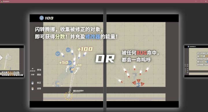 内容相对简单,目标是10000分数,不是很容易达到。难度提升后BUG下落速度加快,数量也更多,位置逐渐刁钻。两侧区域还会向中间进行挤压,有点像吃鸡的感觉,可操作空间会变得越来越小。