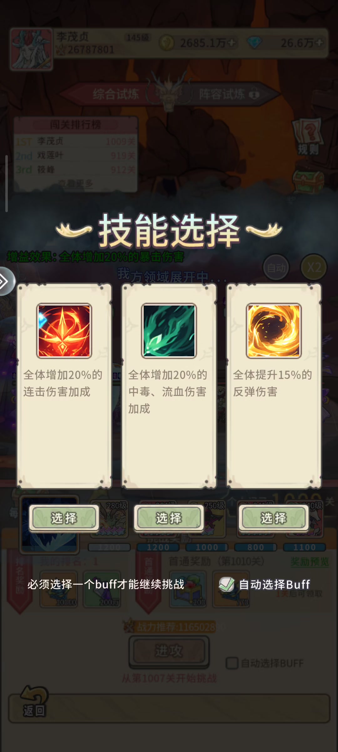 几个意思 无尽打过了1010就一直卡在这选buff的页面 重发好几遍也没用