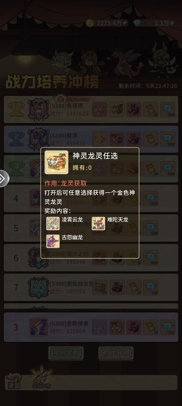 这不,体验了一整天来说下个人的开局攻略了,当然,是参考了论坛里某位朋友的攻略,然后总结了一套快速提战力偷榜的方法(个人意见,仅供参考)首先是开局直接当roll骰子游戏就好,快速过主线,跟着过到领每日代金卷的时候,去把活动和激活码都领了加点战力随便过主线就好,然后等首充出来将三个档位全买了,最主要的是最后一个那个98的。接着一直推主线,推到你能爬塔为止,然后爬塔到40星(将火系那个人形龙升级就能