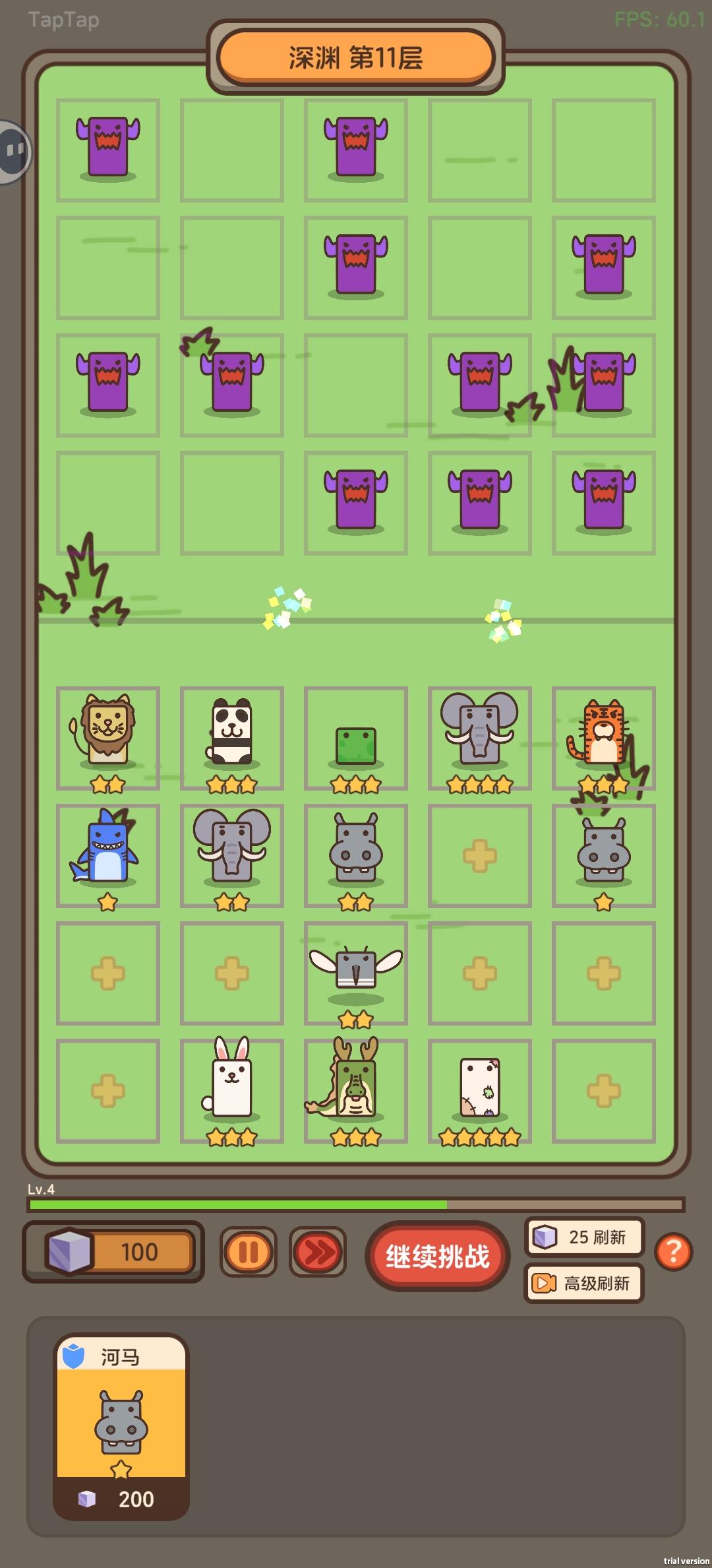 总所不周知,在融合的时候会有概率融合失败,会获得补丁兽,啊啊啊啊融合失败也不用伤心,补丁兽咋一看特别垃圾,回血也就一点点,但是补丁兽其实也有妙用,它的作用是给同品质的非融合动物升星!一些难获取的动物完全可以用补丁兽去升星,甚至你还可以去商店购买低品质动物来融合,获取补丁兽,这样子想要升星其它动物就会比较快了!