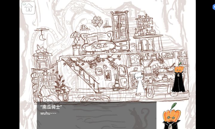 2D卡通风,有色彩的部分品质较好,可以看到角色线条丰富,有点像少女漫画的感觉。简笔画的部分像灵魂画手,场景看上去有点乱,简单几笔将角色勾勒出来,并且神似。动态效果表现很简陋,与背景形成鲜明反差,有点出戏。