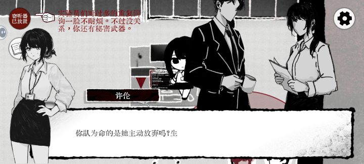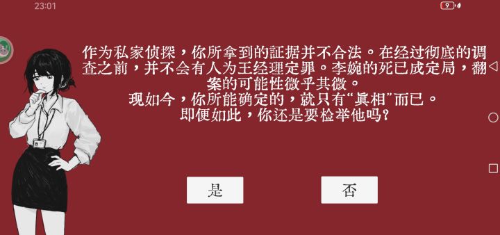 : 也可以从这点判断出是他人做出的修改,进而判断李婉并非自杀。后报告被不明真相的在外工作的王经理批准,许伦的困境也就此解决。收尾工作就是把尸体搬回李婉家并伪造成压力过大自杀,其实这也是许伦自身情绪的反应而认为合理成立的死亡情境。后续的东窗事发中也是只言片语把嫌疑引向对同事来说更有偏见的隔壁老王。 最后是保有疑问的几点:1是对话中有提到“山林之友”计划也死过人,这是否是制作组计划的下一章节或者游戏呢?期待期待!2是作为游戏中公司化身(?不知道怎么说)老王在故事中是否真的不知情呢?既然已经死过人,两者间是否有公司的手笔或者说老王的推波助澜呢?不然为什么徐伦能打开需要管理员权限才能打开的放着磷化氢的柜子,(难道能是林婉开的?她开的能没有防备?磷化氢气味这么大林婉怎么可能不跑出去?)为什么林婉死后实验室正好被封了一周?许伦一个管虫子的实验员能有这么大能量?做事能这么天衣无缝?(明明他的线索都是自己嘴漏说出去的)许伦和王经理之间真的没有合作?还是王经理觉察后的推动利用?