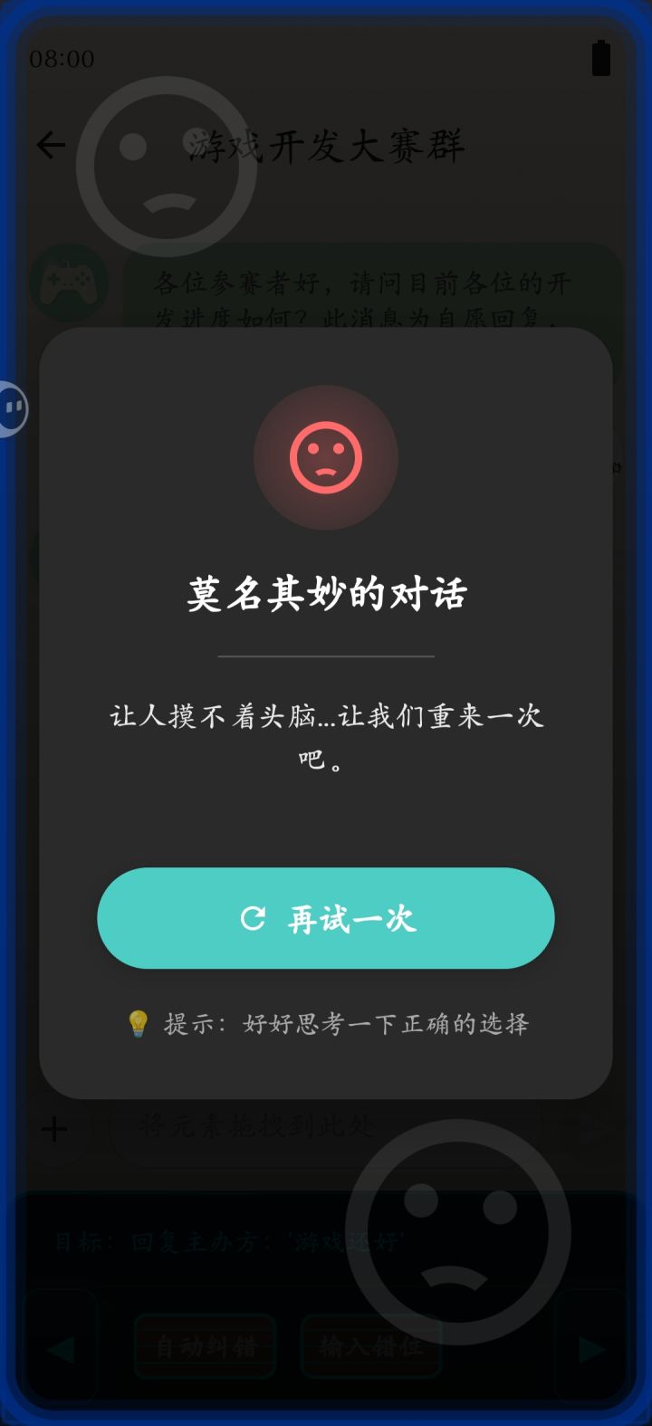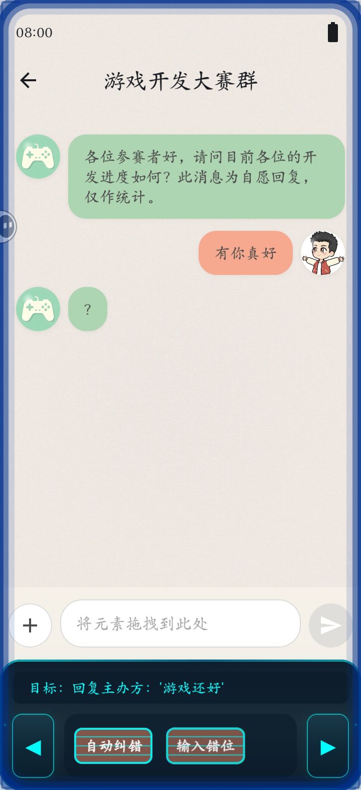 我完美主义太严重了。看到bug就想修复,导致第一关到现在还没做完。真没时间了,要赶紧开始做后续关卡了。给大家送上游戏的粗劣版本吧~没错!我的游戏就是模拟在手机中进行的哈哈哈哈#聚光灯gamejam开发者日志