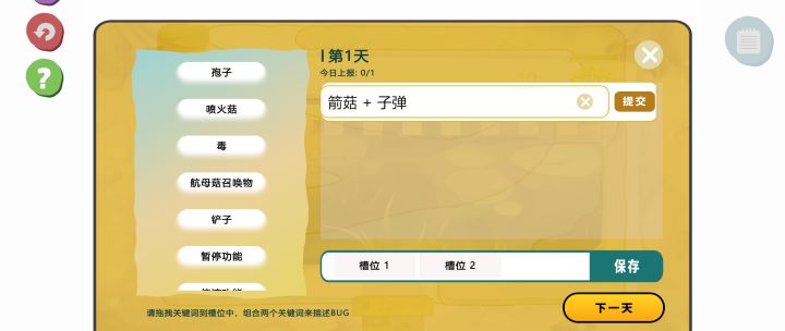 战斗虽然是塔防,但核心玩点并不是这个,作为测试人员,主要工作就是找BUG。这关系到对于BUG的判断,考虑到普通玩家并不是专业测试人员,提供了词条组合这种简单的玩法,只要描述清楚出问题的词条组合即可,满足当天BUG条数即可进入下一天。基础操作通过剧情来介绍,大部分情况下用到的是鼠标点击和拖拽,操作很常规,稍微摸索一下也能玩明白,上手不难。