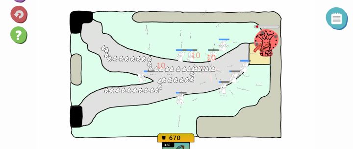 2D简笔画画风,有点灵魂画手的意思,界面极其简陋,UI仅能表达基本意图,意思表达还算清晰,不难理解。角色目前只出现了无敌策划一人,玩家处于第一人称视角,其他角色暂未发现。塔防的造型是各种蘑菇,是真正意义上的蘑兽争BUG,名字倒是挺贴切。