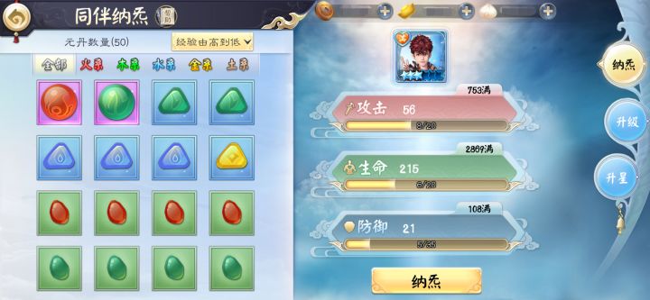 养成是《画江湖盟主:侠岚篇》中的一大功能,玩家们可以在养成界面进行纳炁、升级、升星等操作。【侠岚纳炁】纳炁需要消耗玩家在普通副本中获得的元丹,用来提升目标侠岚的基础属性(攻击、生命、防御)。每个侠岚通过纳炁提升的数值(攻击上限)是由自身基础属性的等级来决定的.比如攻击天赋为S的侠岚通过纳炁获得攻击最高为900~1000而攻击,而攻击天赋为B的侠岚只有700~800。每个属性都有“经验值”,而