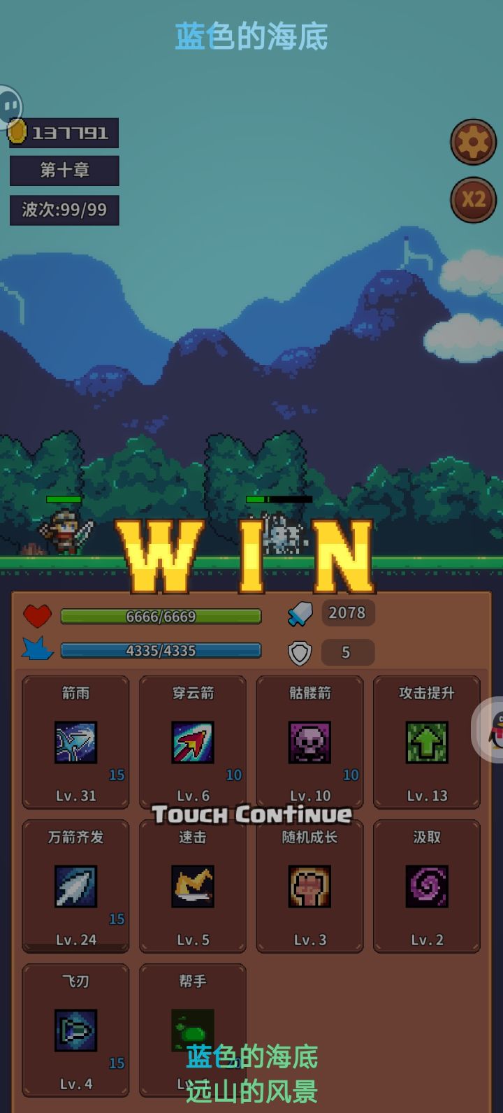 前期不好打,但买了射手就到后期了,前期法师打第三关(第四关打不过),输了也加钱,死了也不用太担心,打到一万金币买射手,加点防御>攻击>幸运先点这三个,然后那俩个随便,射手第十关关第一波先点个伤害,第二波点骷髅,然后就可以按我第二个图配了(汲取,飞刃,帮手不用点),打完之后给法师加满点,法师第十关第一波点骷髅,没有骷髅点任意伤害技,第二关必点骷髅(史莱姆也行),没有就打不了,点完之后有两个流派,一个