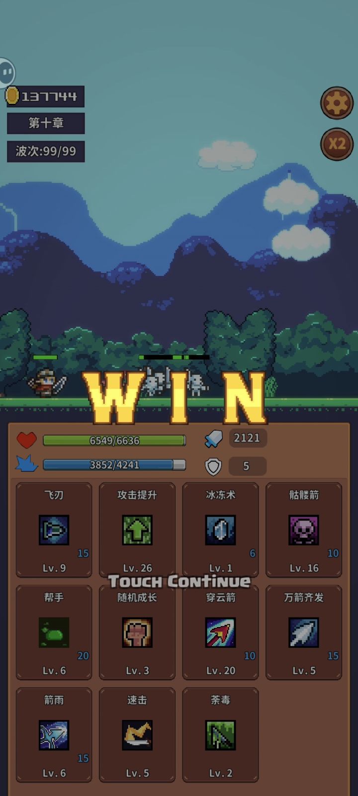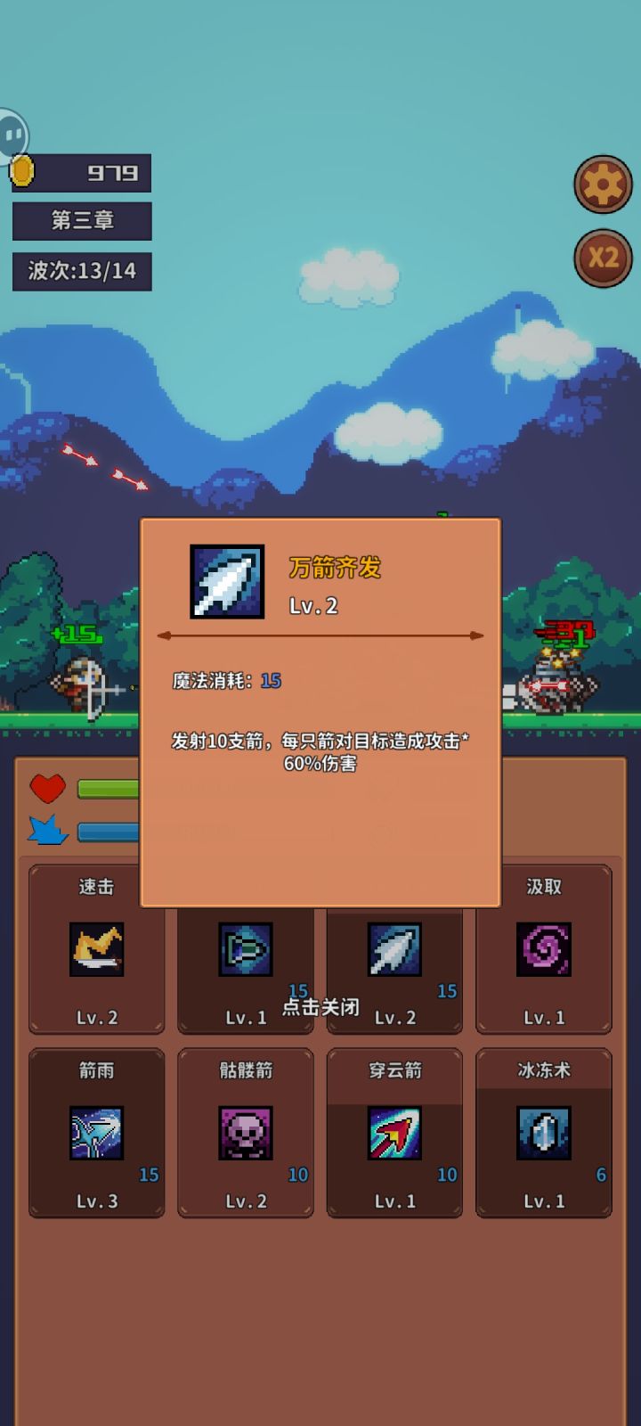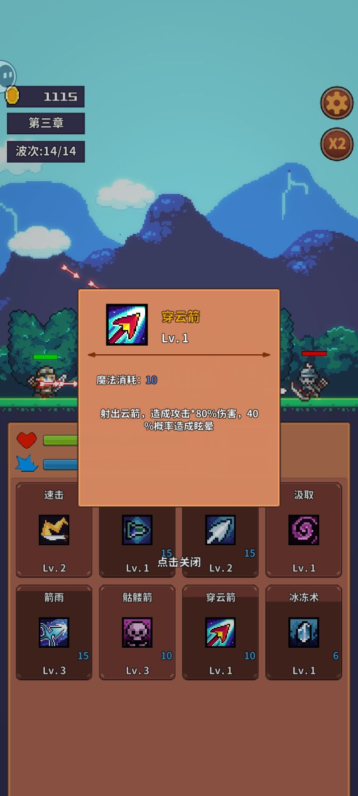 法师火球术+2级冷却=1秒一个穿刺火球弓手穿云箭+5级速击=4秒一个穿刺箭人物方面,法师前期很容易暴毙,前期不出骷髅的话,很有挑战性,推图更是灾难级别弓手太强了,感觉就算不点骷髅,整局游戏闭着眼睛选技都能赢,适合推图玩