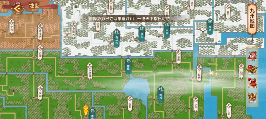 #乱世曹操传 本身我只玩了半个月,然后第一星期没看攻略,小程序玩的,后来才发现攻略,但那时候已经玩的一塌糊涂,然后只能重开新号了[表情_豹哭]。这是玩的第二星期,目前是根据大佬攻略跟自己理解在玩,为什么想写攻略,因为想给新人一个思路,也是想让老玩家看见,可以相互讨论一下,毕竟我也是个萌新[表情_吐舌头]。 说游戏攻略吧,新人不建议氪金,开局是GAP跑图游戏,人物脚下有个箭头➤跟着走就能过剧情任务,