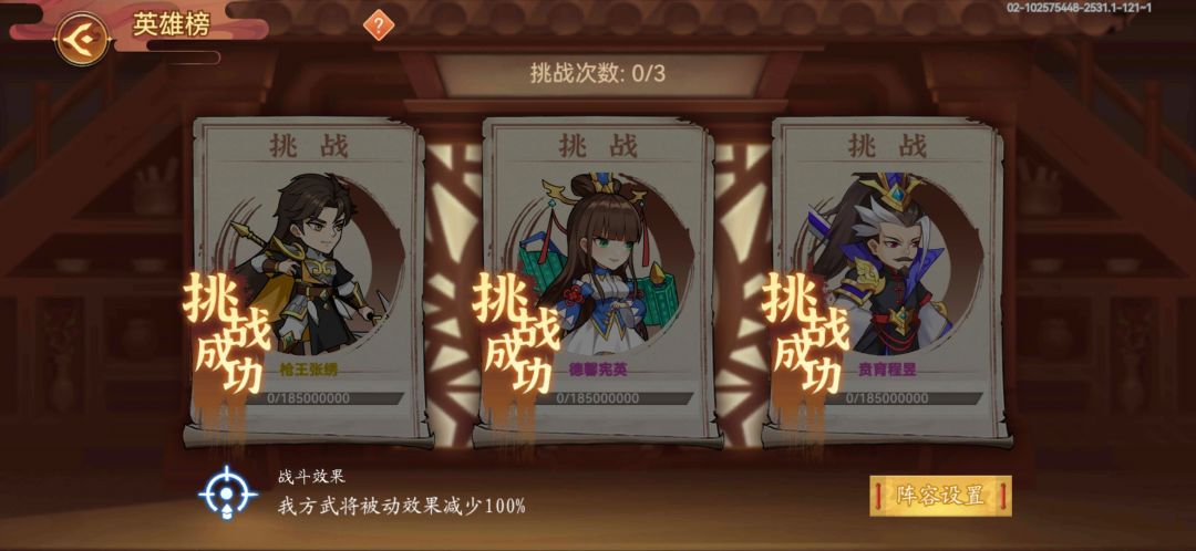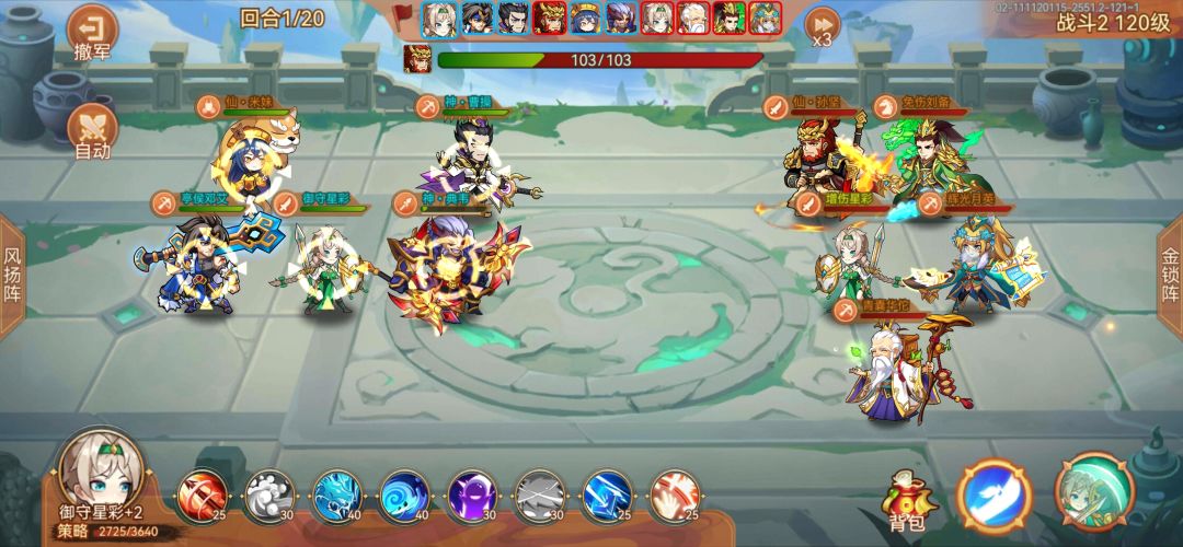 没有仙吕布也能过奎二,适合有盘古没仙吕的玩家。 四回合清掉小兵,然后开始打孙坚,神曹偶数回合技能打伏羲控孙坚,不让他放技能就行,孙坚不闪避的情况下我是十回合解决战斗。 满配神曹+白板典韦共鸣+7。 米妹就是用来清小兵,没其他作用了,换成吕布开共鸣可能会更容易杀孙坚一些。 #乱世曹操传
