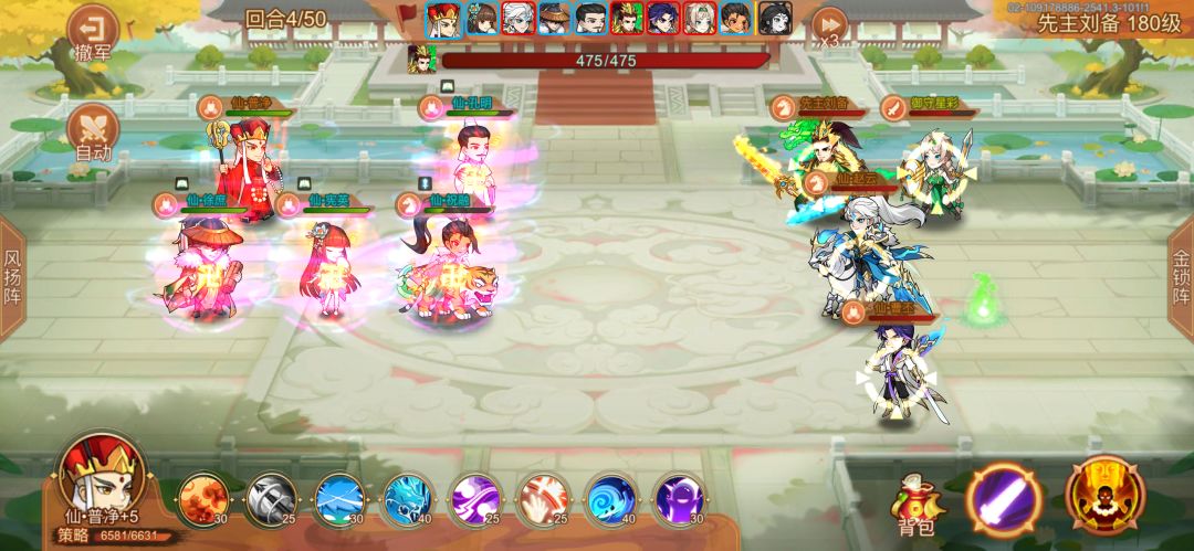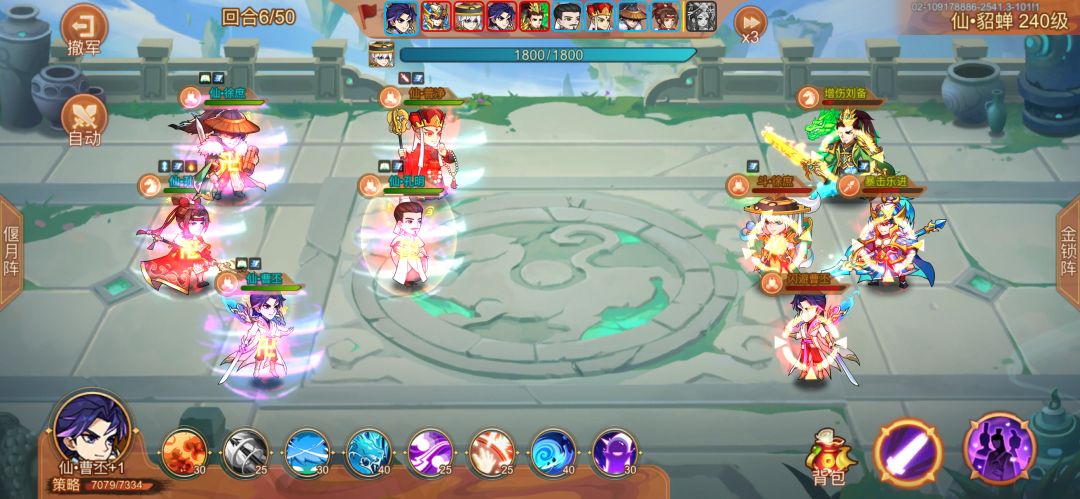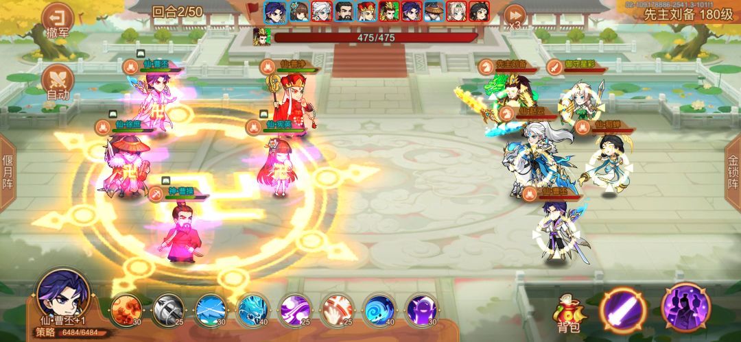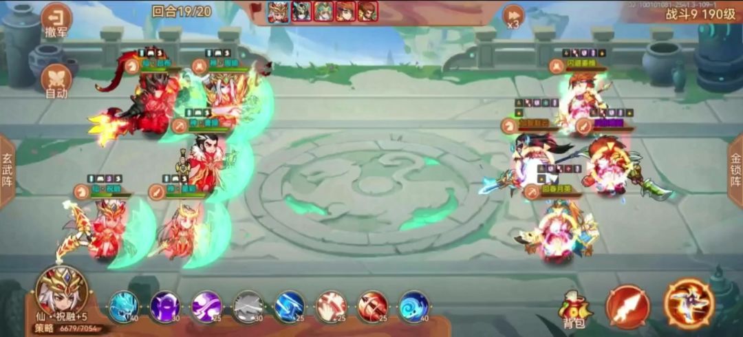 仙吕青莲灯+6,一直普攻打前排 神曹盘古+1,一直普攻打赵云(顺便吐槽一个bug,神曹普攻显示是攻击选定目标及周围,并没有写最多三个,但是实际最多打三个人) 星彩孙权奇数开大偶数喂酒 童渊副输出,一直打前排 顺序星彩孙权神曹仙吕童渊 第十七回合孙权开大打死减伤文鸯(我是神曹按错了一次,文鸯多挨了一下神曹,不然估计第十九回合文鸯才死),典韦两百多管血,然后神曹仙吕童渊都开大/淹城 第十九回合童渊打死
