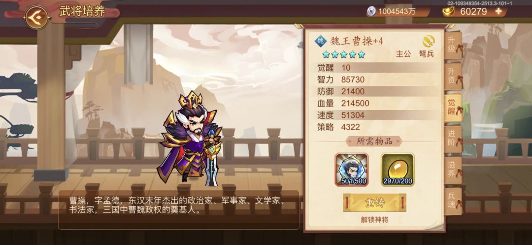 目前攻城略地统筹曹丕最低配置(能过肾虚仔徐庶,这关几本没问题)