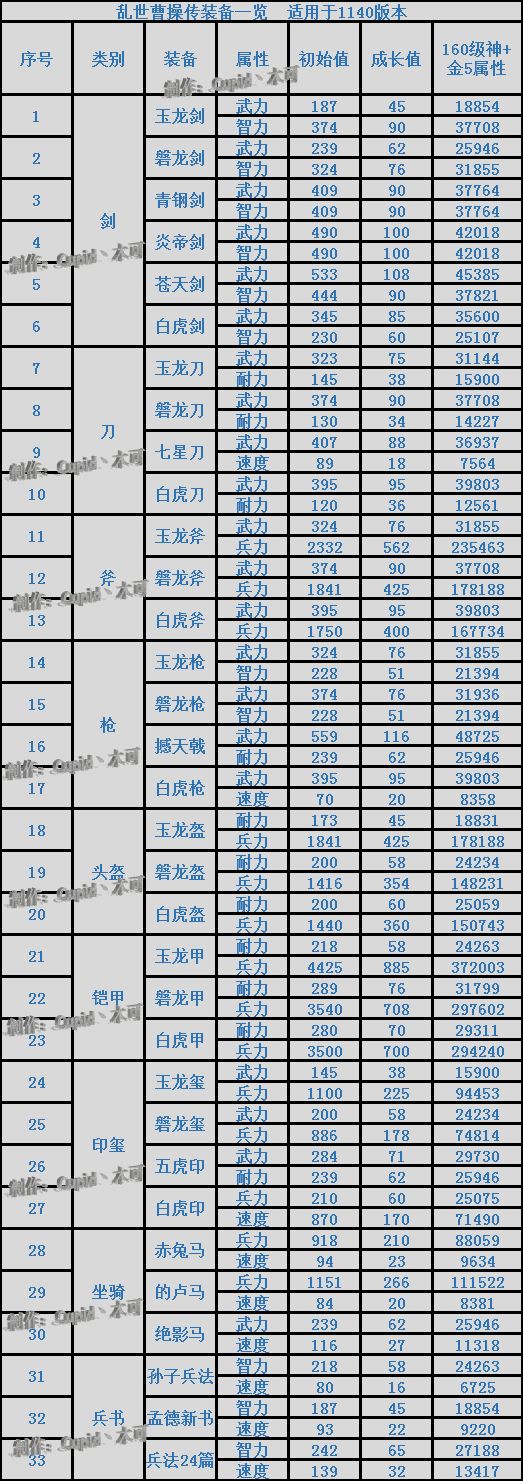 《乱世曹操传》装备神+金+5属性一览 适用于1140版本