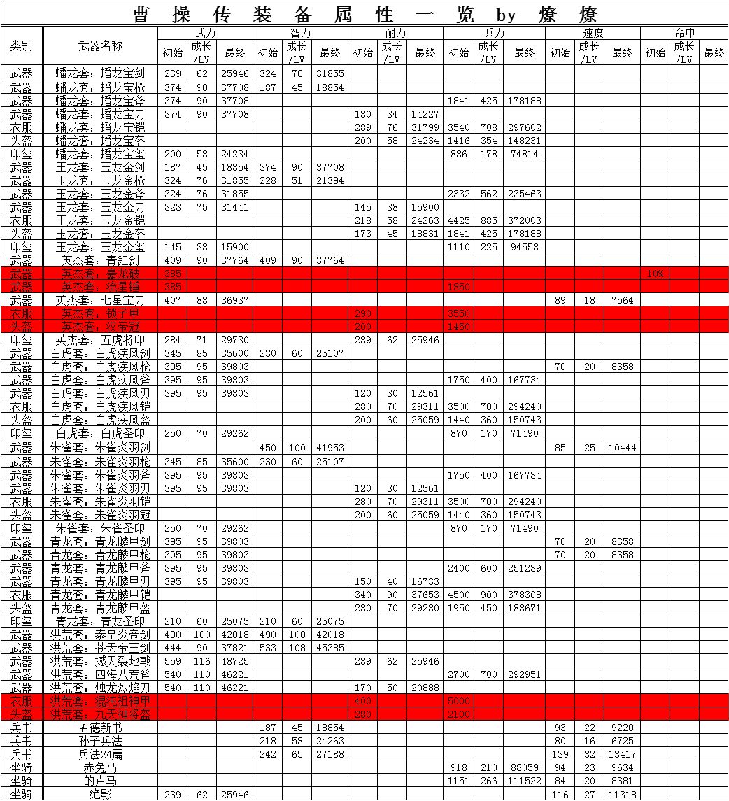 曹操传装备属性一览 下面包括装备进阶算法 红色为内容不全,需要下次跟进 (蟠龙)磐龙字打错了,勿喷,看得懂就好
