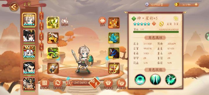 阵容:神香+5,神周+5,神曹+5,仙徐庶,白板星彩阵法:风扬38级神器:打神+5,伏羲+5,太一轮+1,神尊白板,逐日+5卷轴配置(关键)神香:狂战橙 + 备战橙 + 勇气橙 + 祝福金周瑜:狂战橙 + 祝福金神曹操:祝福金仙徐庶:狂战橙 + 备战橙 + 祝福金星彩:狂战橙核心打法和以前大佬发的视频思路差不多,关键点在于神香和神周的操作:我的神周最后阶段是不开大的,以确保保持
