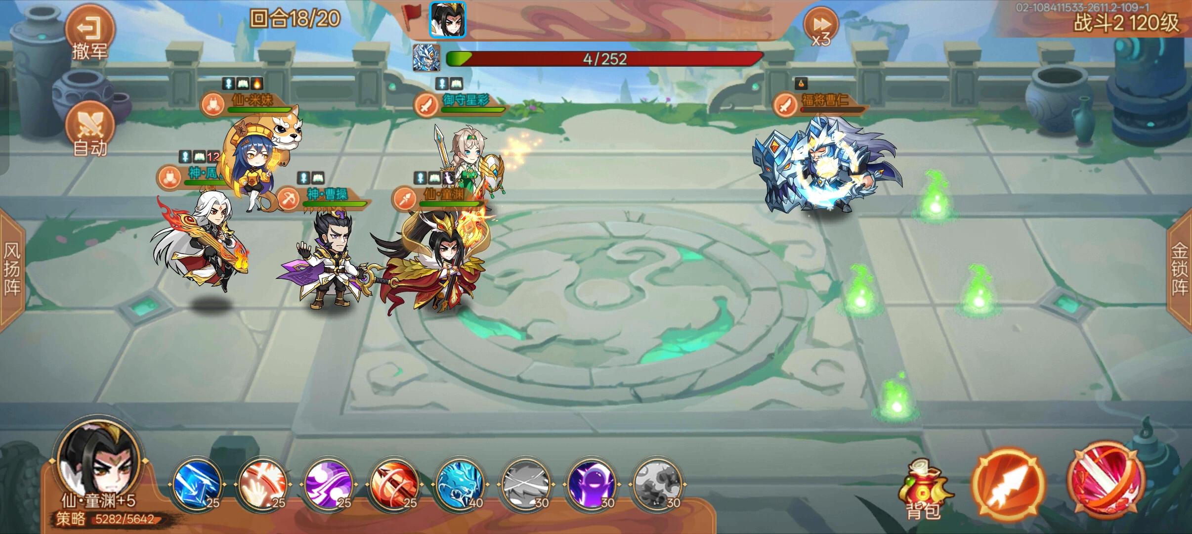 #乱世曹操传 按我这个配置人物,上个神周瑜狂战,带启灵5空洞印。我风杨阵24级,太低,第一回合星采开大。神曹大乱。神周瑜放大叠普攻狂战。迷妹灯➕5放大,童渊剑➕5放大。第二回合全部冰龙,周瑜看情况叠普通。一直到7回合,所有小兵死。剩主将,这个时候不要放大,用单火。和弩炮,辅助人物喂酒给迷妹。。。。