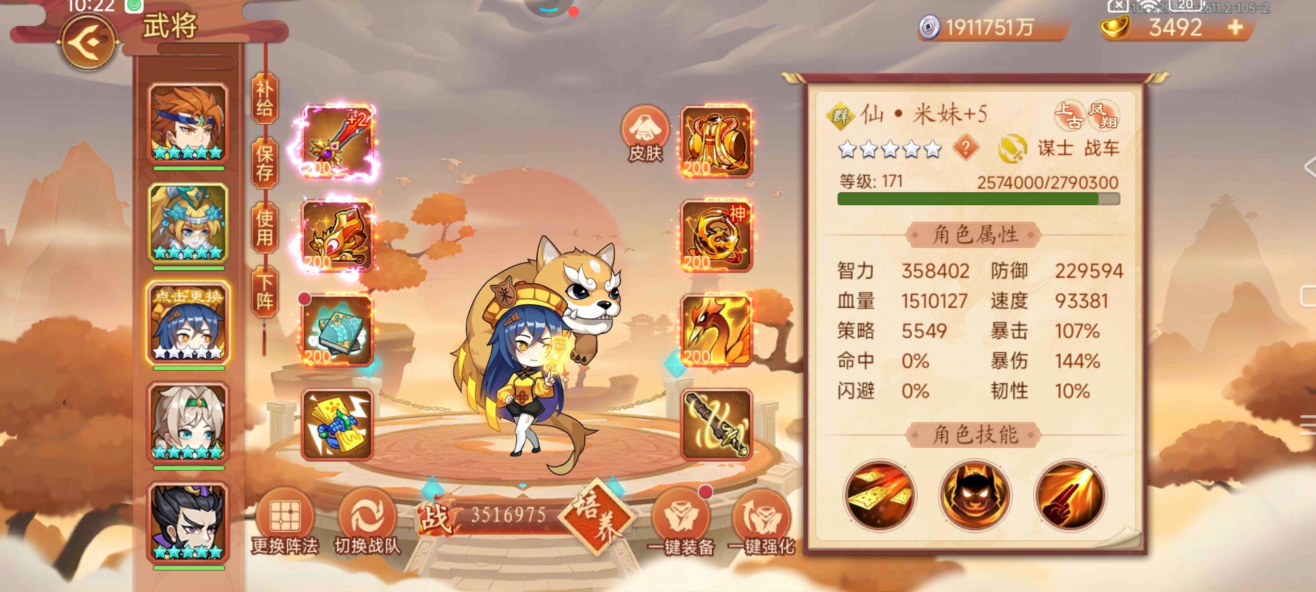 阵容如图,米妹,童渊也有,平民的辅助也有,为了打这个伏羲琴也没启灵,感觉输出不够,换攻击阵法配上仙赵也站不住 #乱世曹操传