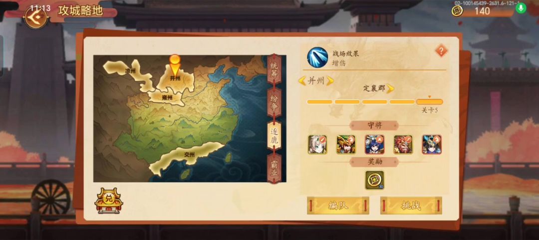 背景音乐 真三国无双7 五丈原之战 真三国无双3 好敌手 开风扬阵,用启灵尊神刀降对方速度,提己方速度 我这里星彩开局不开盾,直接冰冻曹丕 要超速限制曹丕出手,曹丕有大招时,可用离间计封技,或冰龙术冻住 曹丕无大招时,封技无效,即使是混乱了也会普攻定住我方武将 刘备共鸣意思一下就可以了,主要是想把免伤叠高一些,顶住诸葛亮的群体普通攻击 孙尚香上不上狂战卷轴都是可以的