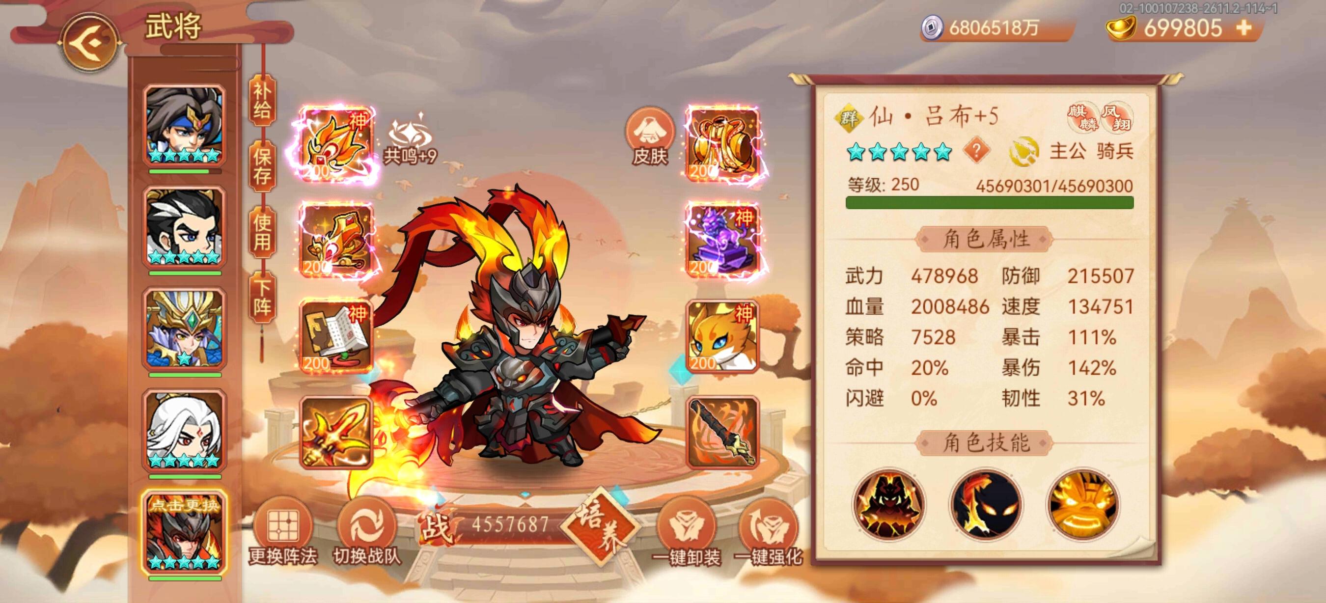 吕布终于五星了,面板比公公高了3万多,伤害却没有公公高