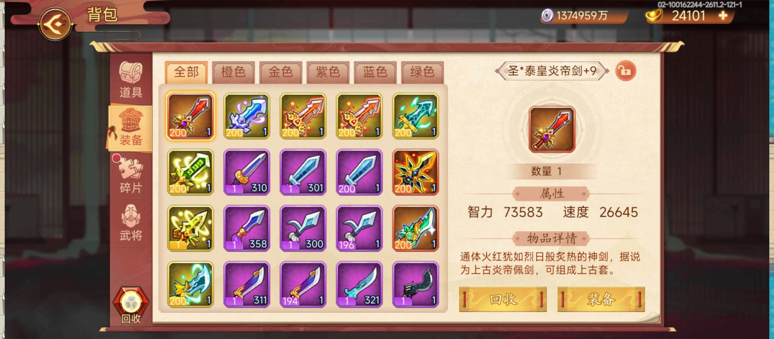 18个神器一直剩3个没满,干脆拆一个打神,至此17圣。竟然会缺地之殇也是想不到。