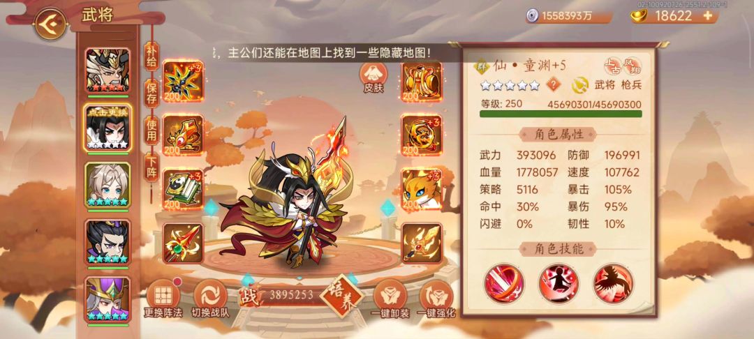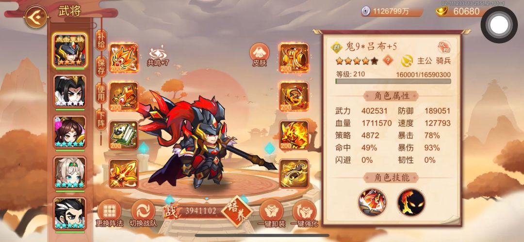 搞了个满配关羽和一个橙色铸灵,如果有曹丕的话就无敌了,什么吕布都得靠边站。对面阵容允许,外加运气好,一回合好几个大招都是简简单单。而且大招那个暴击可以一直叠加。加仙徐和圣灯伤害不是一般高。有空可以数数视频里放了几个大招