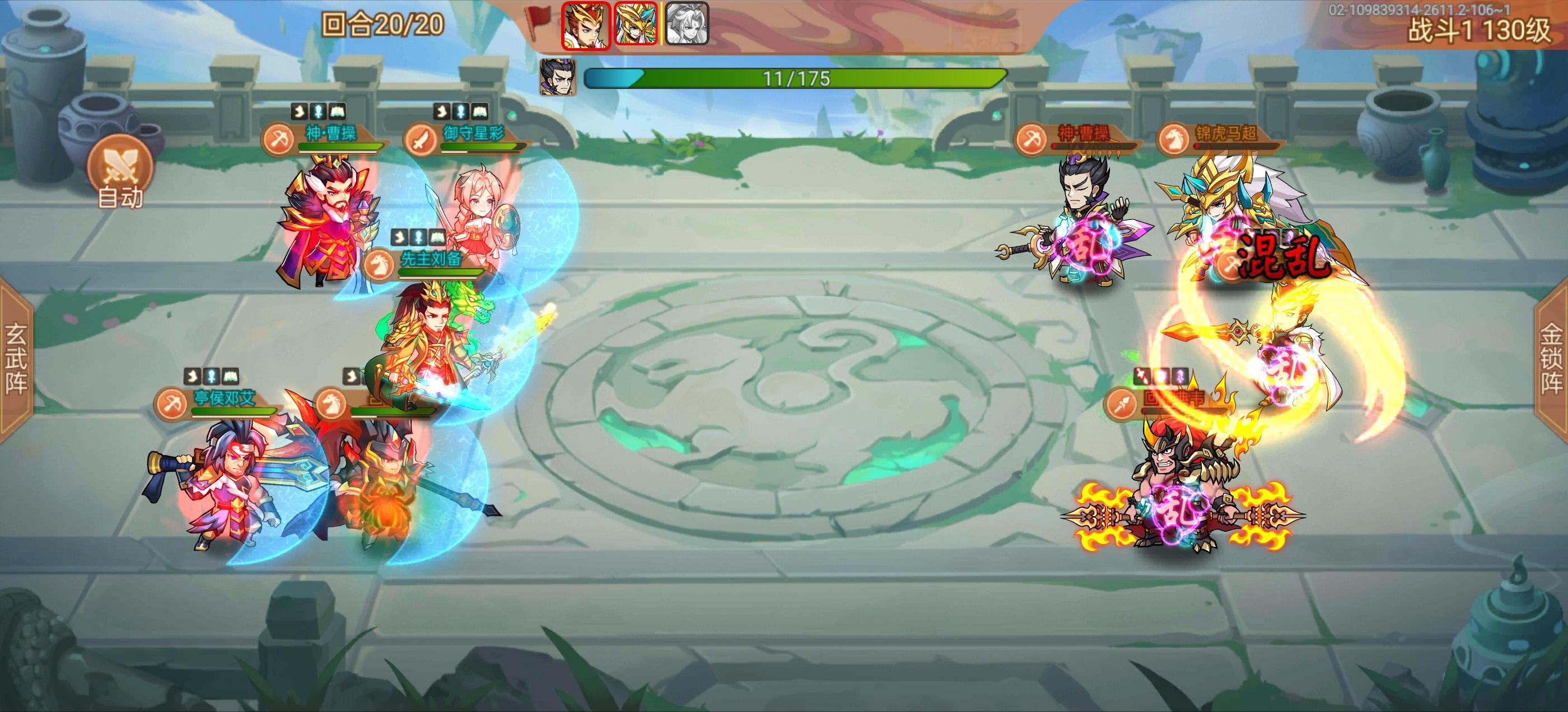 阵容如图,米妹,童渊也有,平民的辅助也有,为了打这个伏羲琴也没启灵,感觉输出不够,换攻击阵法配上仙赵也站不住 #乱世曹操传