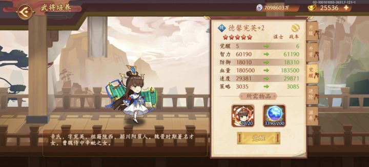 兄弟们自从去年4月白嫖到仙吕布后,终于在今天把宪英也肝到了5觉!仙徐庶的将魂也攒够了,这波进度连自己都没想到——特别感谢鲜芋过年时的“解忧”,一波直接出了40个徐庶将魂!同时也真心感谢论坛里分享教程视频的各位大佬,靠着大家的攻略,顺利拿到了两个箱子,加上周年庆兑换的两个,资源又一次补满。