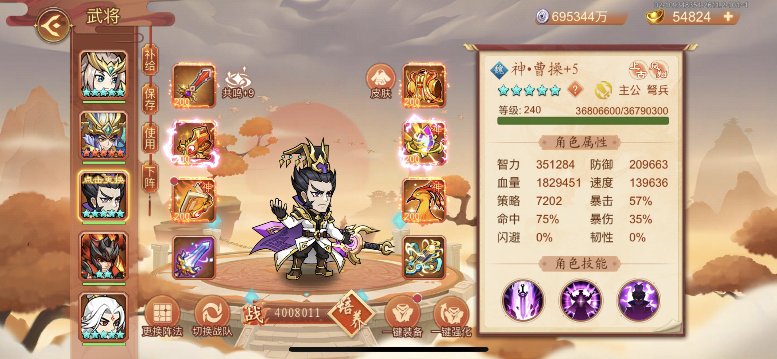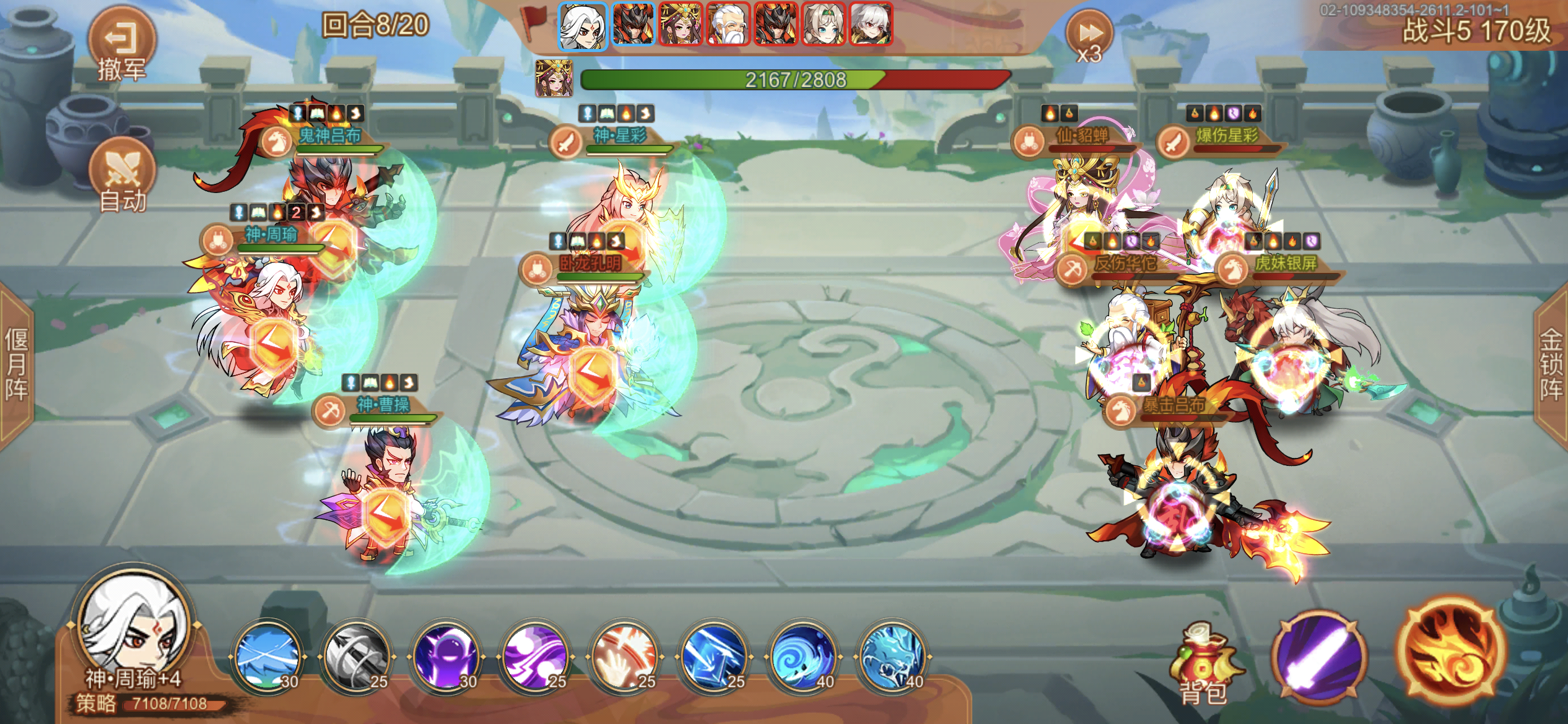 背景:我用的配置+9的启灵崆峒。刷攻城1.0无论兵种还是最后一关的仙*曹丕,都感觉累😮💨,尤其是曹丕那关,让我隐约想起了之前八卦反伤过兵宫孟获的经历。正文:贴一下我过戏志才的阵容以及阵法,给同类的孤胆一点启发。仙曹丕的阵容贴图说明:上面阵容也是参考了论坛好多的打法说明形成的,需要说明的是:吕布共鸣+5以及神曹操4级共鸣+5(上面的后面调整过了),轩辕剑启灵+4,上述阵容20回合,且吕布没有