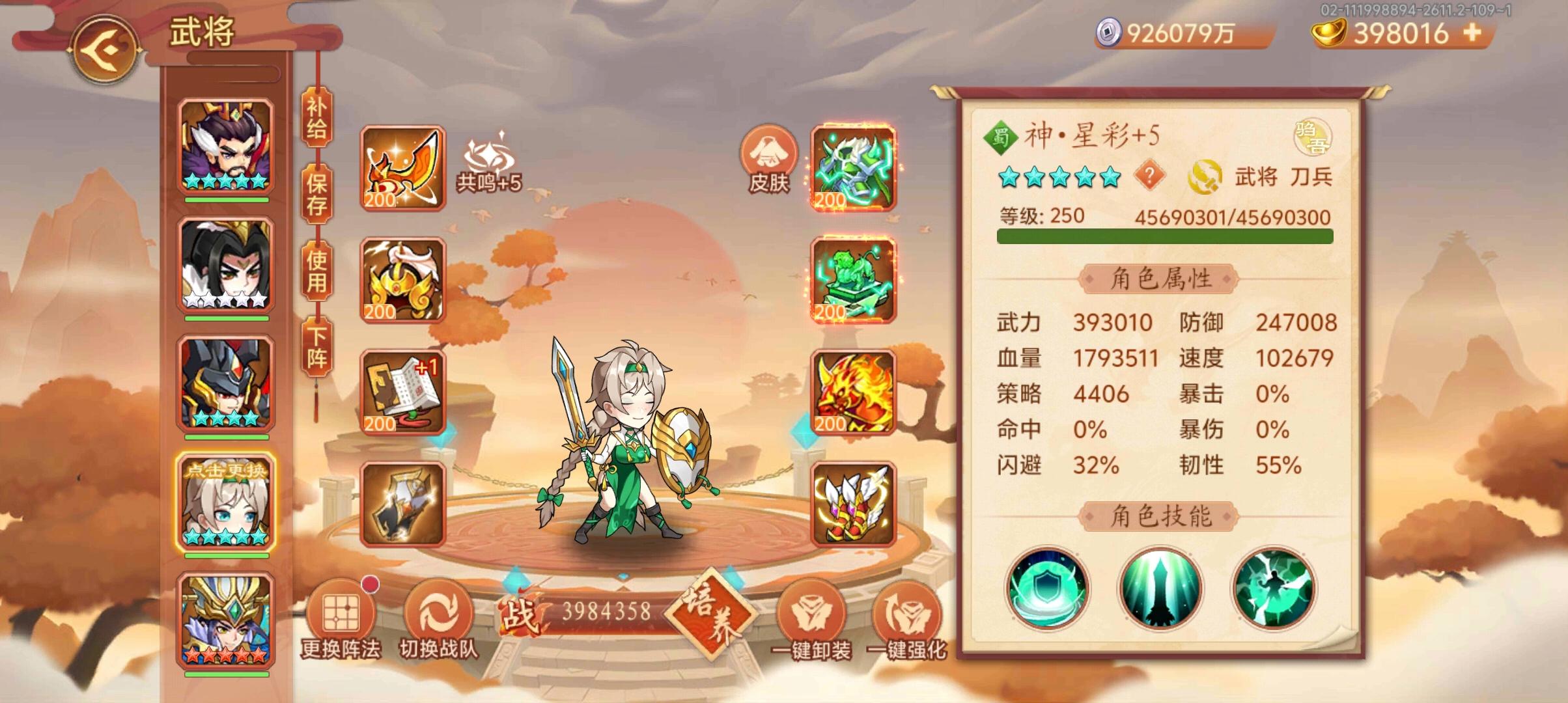 感谢子龙的攻略装备阵容如图图1青龙9图2朱雀9图3白虎9图4玄武9青龙9就是主打一个命中吕布配套高命中装刷脸就行朱雀9吕布最好有个备战能多放大,曹丕直接定赵云和闪怪然后吕布大和淹城刷脸(保证每合杀星彩)。白虎9就简单了,曹丕定了赵云清小兵,小兵清完周瑜一直A,香香大定住的赵云叠大,然后一直定到19合,诸葛大,其他喂酒,20合一