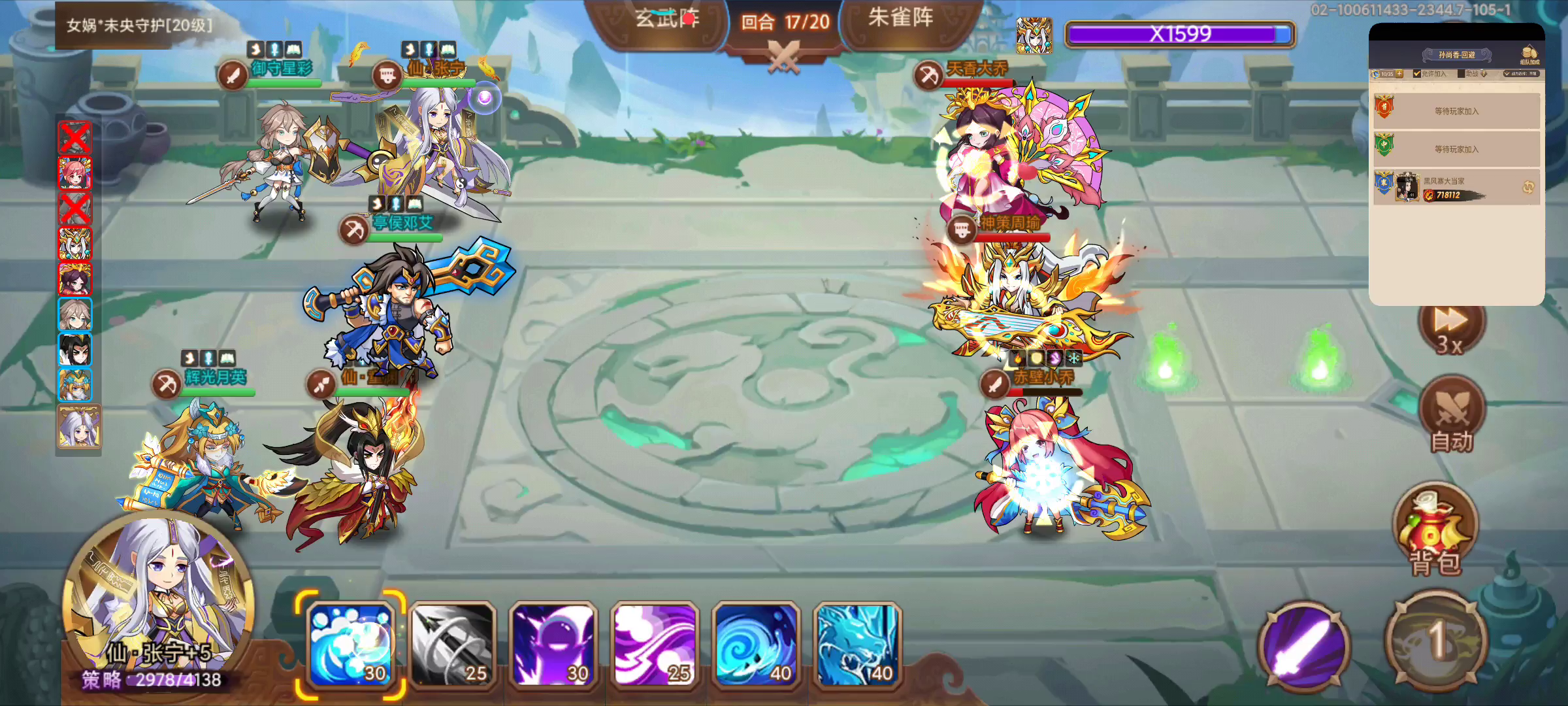 有星彩的话尽量用星彩。因为他的盾比较厚。没有星彩的话,也可以用曹仁(但是,不建议用。他的护盾只有100,很脆。如果想过的话,也可以试试把专属加满看一看应该可以)至于出手顺序的话,按视频中的出手就可以。孙权(五觉)和星彩(五觉)或(曹仁)出手顺序可互换。如果速度高于张宁的话,也可以孙权和星彩分别一,二速。20-30张宁有反伤,还是建议这两个最后。然后童渊不开大,把前面的几只熊喵秒掉。也就是说第一回合,除了童渊不开大,其他的都开。如果张宁2.4.6.8回合开大了,基本上都可以稳过。如果2,4,6开大的话,应该也是可以过的。如果第二回合没开大,退出重来。31-40就有点变化了,第一回合可以全部点大。然后其他的基本上不变。这种20-40层都是比较好过的,可以去碰碰运气。反正我的主张就是,能试过最好,实在试不过,那就考虑其他主流打法。好了,在这里祝没过的玩家早日过!