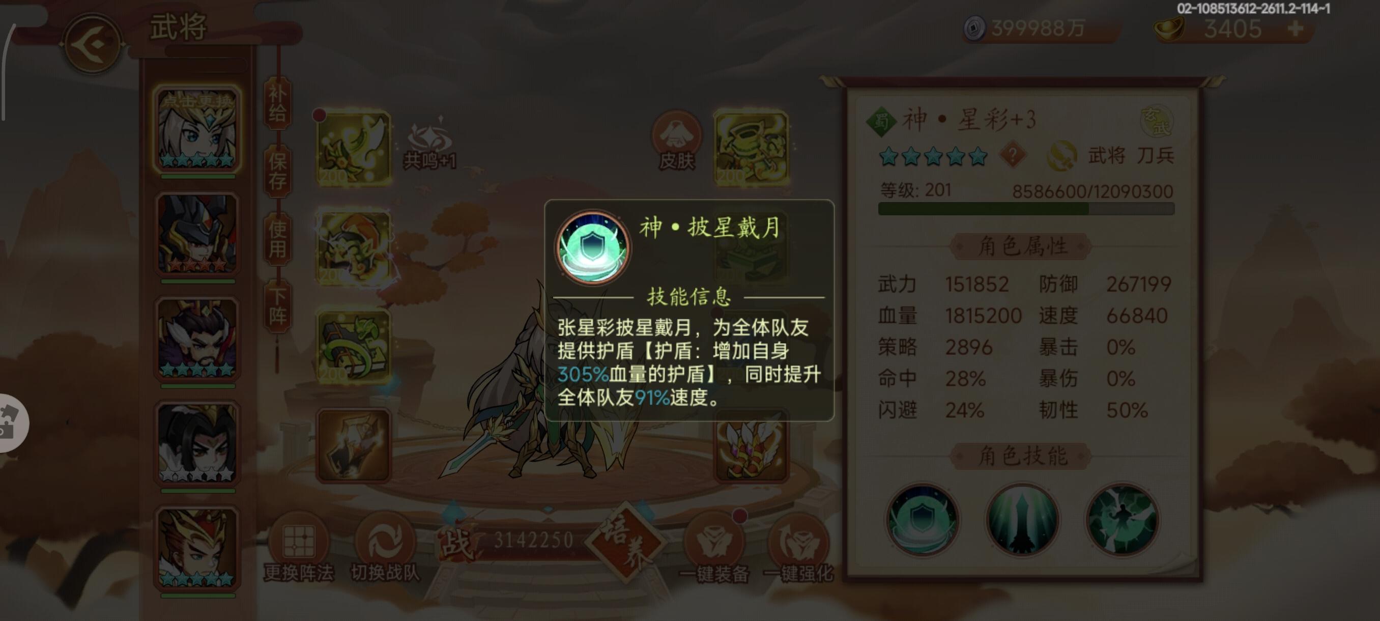 首先组建队伍,平民队伍星彩、神曹、神周、邓艾、吕玲绮,额外防御星彩100%,额外速度神星彩91%、邓艾91%、专属10%,共192%,额外血量橙色卷轴50%(平民不会有人去点韬略的血量吧?)。按照我的吕布属性比照,防御算20万,速度算16万,血量按200万算,转化一下,防御20*100%*0.6=12,速度14*192%*0.6=16.128,血量200*50%*0.3=30,共转化出武力12
