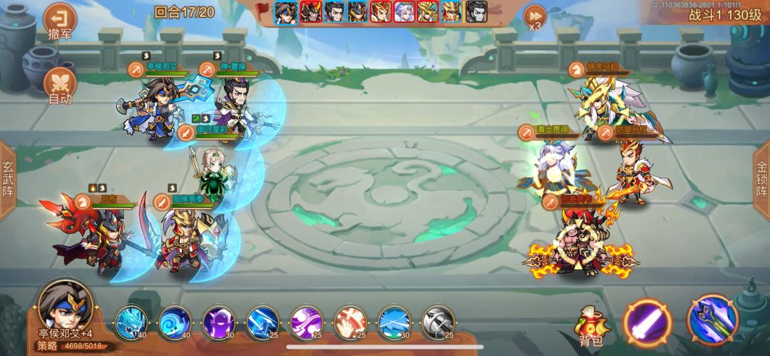 上阵武将:2星吕布带轩辕剑 神曹操2级带伏羲琴 邓艾17.9速度带崆峒(武器附魔狂战最佳) 星彩十觉鞋子 周泰十觉 打法:第一回合,星彩开大,邓艾开大(附带狂战会减典韦攻击),曹操加速度buff后快过对面典韦使用冰冻策略,吕布弩炮曹操,周泰开大。 第二回合,星彩(策略冰冻)或者(给吕布喂酒或者书),邓艾使用冰冻策略(给典韦减伤),曹操开大混乱对面,吕布弩炮曹操,周泰清策我方减防御buff(加血、